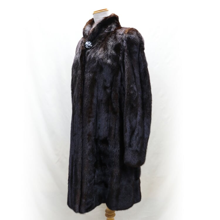 毛皮の宝石とも称されるミンクのファーコート。深いスカンブラックの色合いがあなたを更に引き立ててくれます。ワンポイントでキラリと輝くボタンがアクセントになっています。パーティシーンにはもちろん、通常使いでも重宝致します。