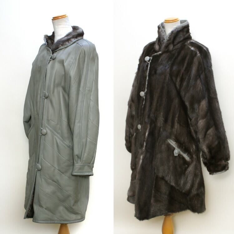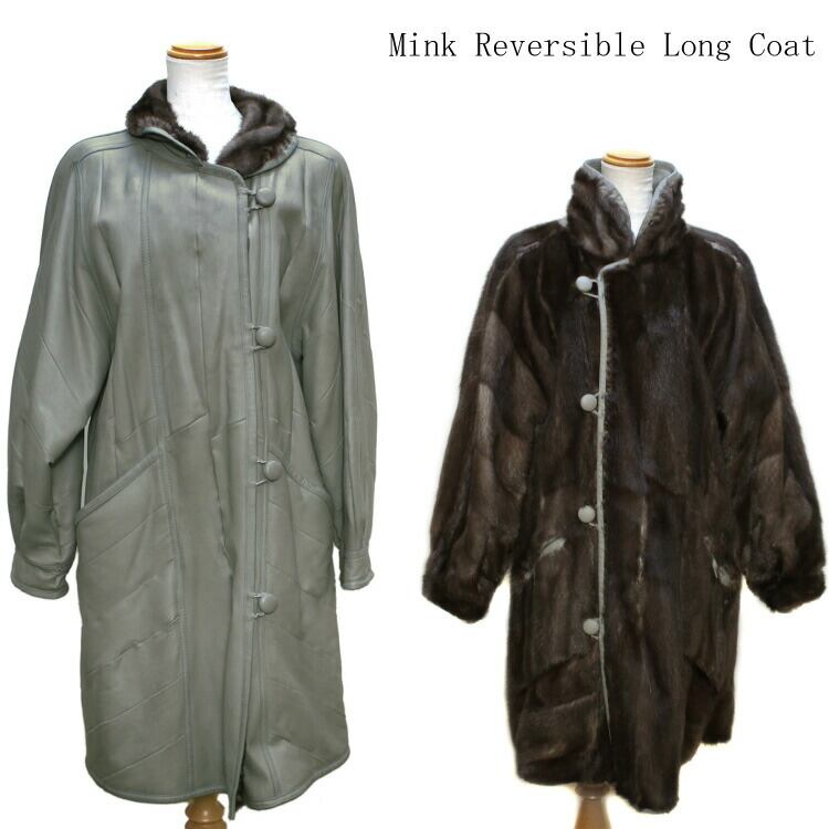 ラムレザーとミンクファーのリバーシブルで着られるロングコート。さらにレザー部分はナッパ加工を施しているので、表面が銀面のように輝いてつるつるとした光沢があります。毛皮の宝石とも称されるミンクファーコートとして、クールなレザーロングコートとして、2wayで楽しめます。