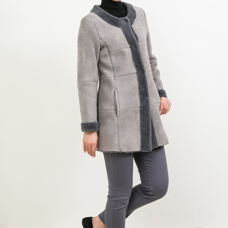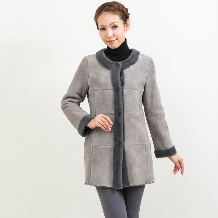 BL921DA 英国 ラム ムートン Wフェイス ノーカラーハーフコート 送料無料 レディース ギフト プレゼント