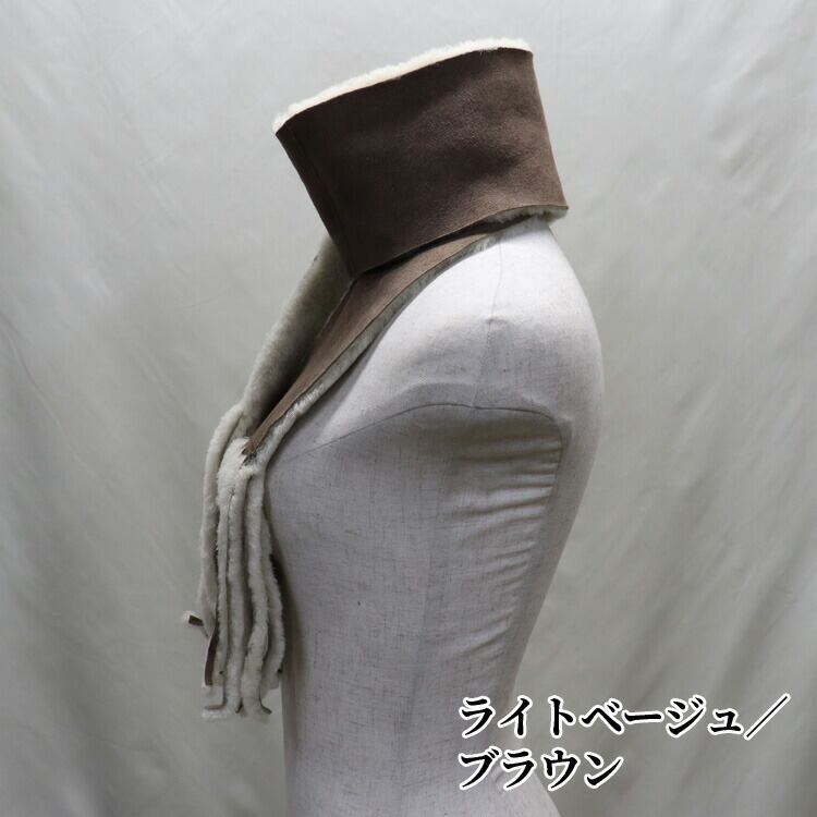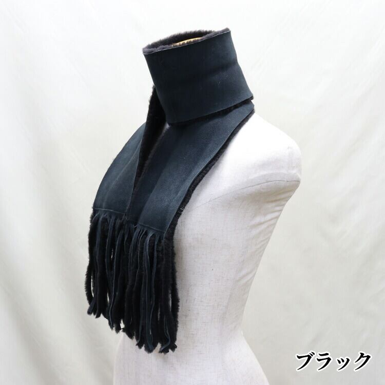 ムートン素材を使用した Wフェイスファーマフラー。レザー面とファー面による見え方の違いもお楽しみ頂けます。