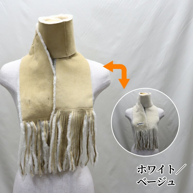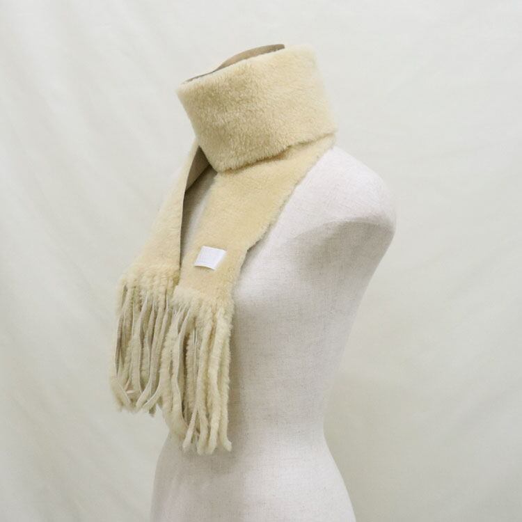 【サイズ(最大部を計測)】長さ(フリンジ含む)約141cm 幅約11cm フリンジ長さ約16cm 【重さ】約125g 【留め具】無し 【裏地】無し(Wフェイス) 【素材】ムートン