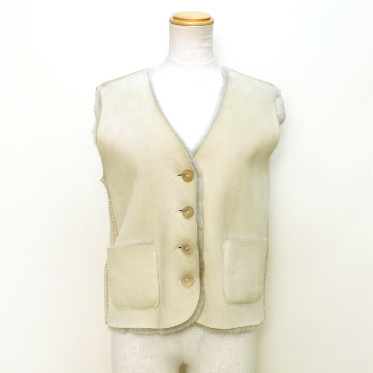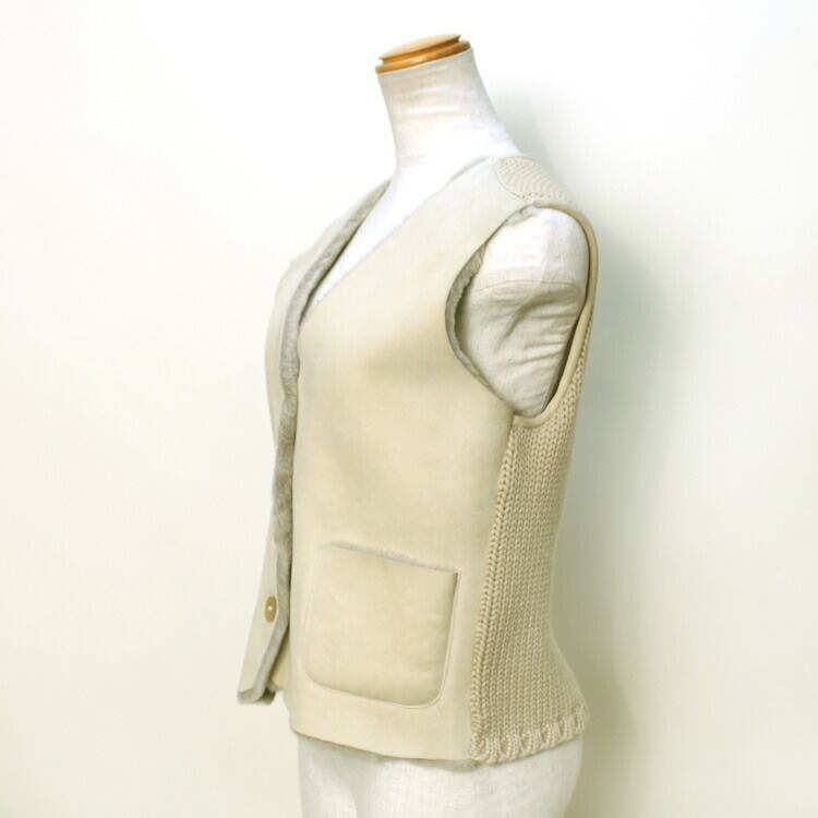 MOVSTBACL1015 ムートン Wフェイス ファー ベスト ニット 切り替え GIOMORETTI クリーム 送料無料 レディース ギフト プレゼント