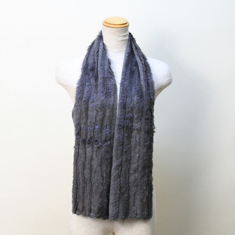 マスクラット 編み込み ファー マフラー ダークグレー 送料無料 レディース ギフト プレゼント