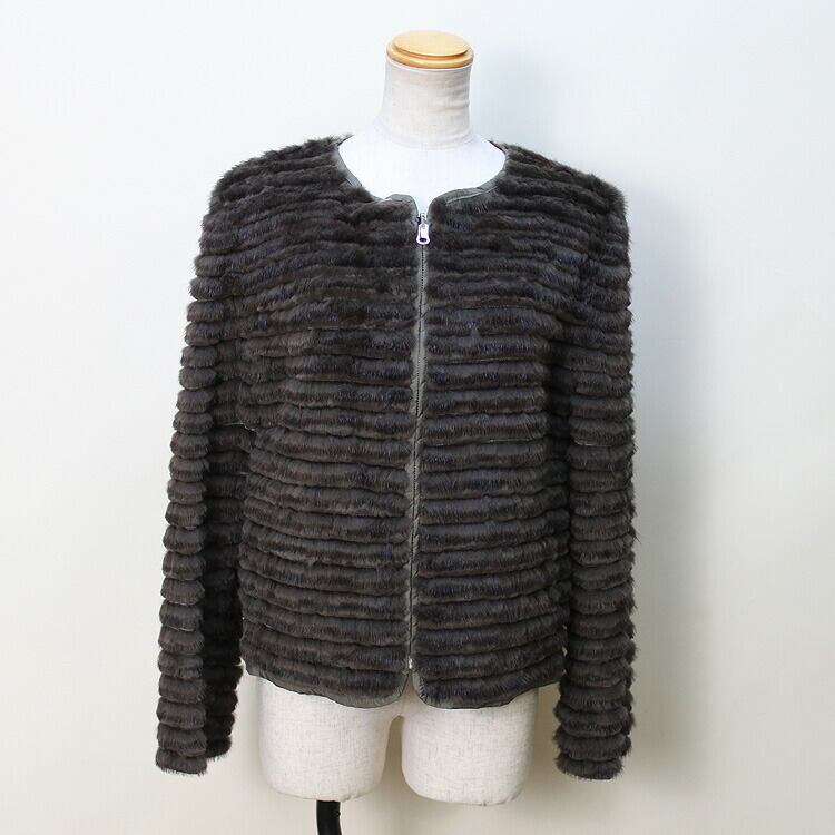 MR216BABR1021 ミンク ・ レッキスラビット ファー リバーシブル ジャケット ボーダーデザイン ブラウン 送料無料 レディース ギフト プレゼント
