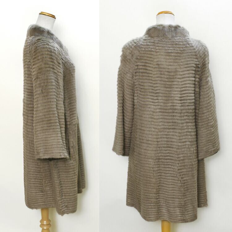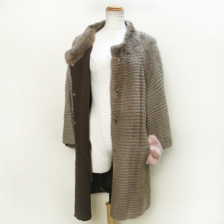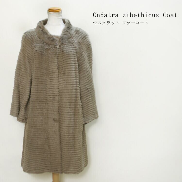 MS06A8ABR1063 訳あり マスクラット ファー ・ ウール ノーカラー コート ブラウン 7分丈 ニット 送料無料 レディース ギフト プレゼント