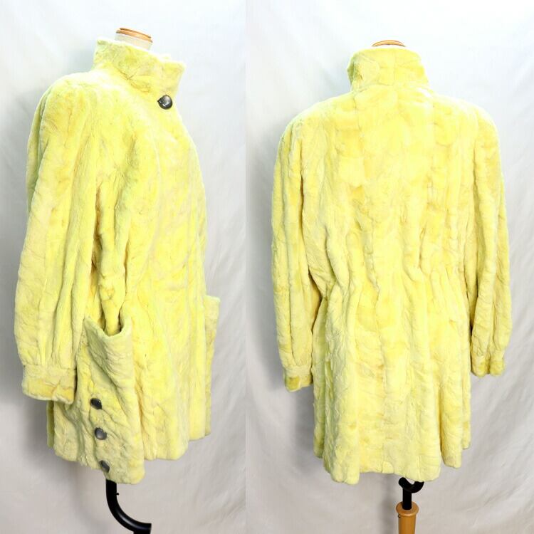 【サイズ(最大部を計測)】着丈約86cm 身幅約116cm 肩幅約38cm 袖丈約65cm 【重さ】約1585g 【内側ポケット】1つ 【外側ポケット】2つ 【留め具】カギホック×3、ボタン×1 【素材】ミンク【裏地】有り
