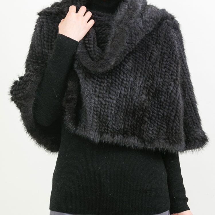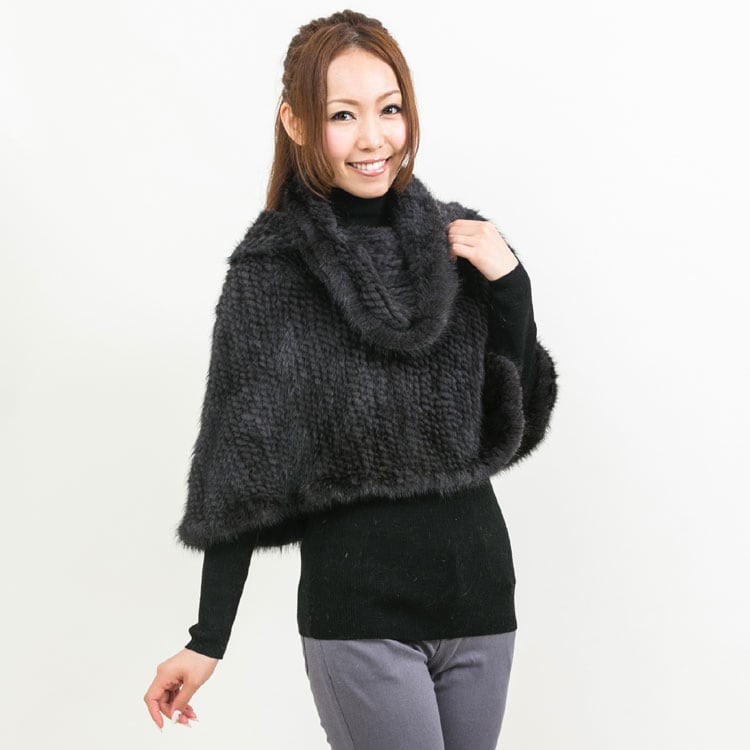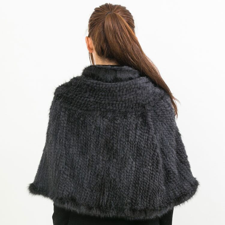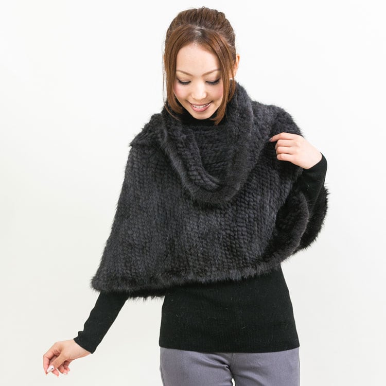 ミンク 編み込み ファー ポンチョ グレー 筒状 送料無料 レディース ギフト プレゼント MT039X
