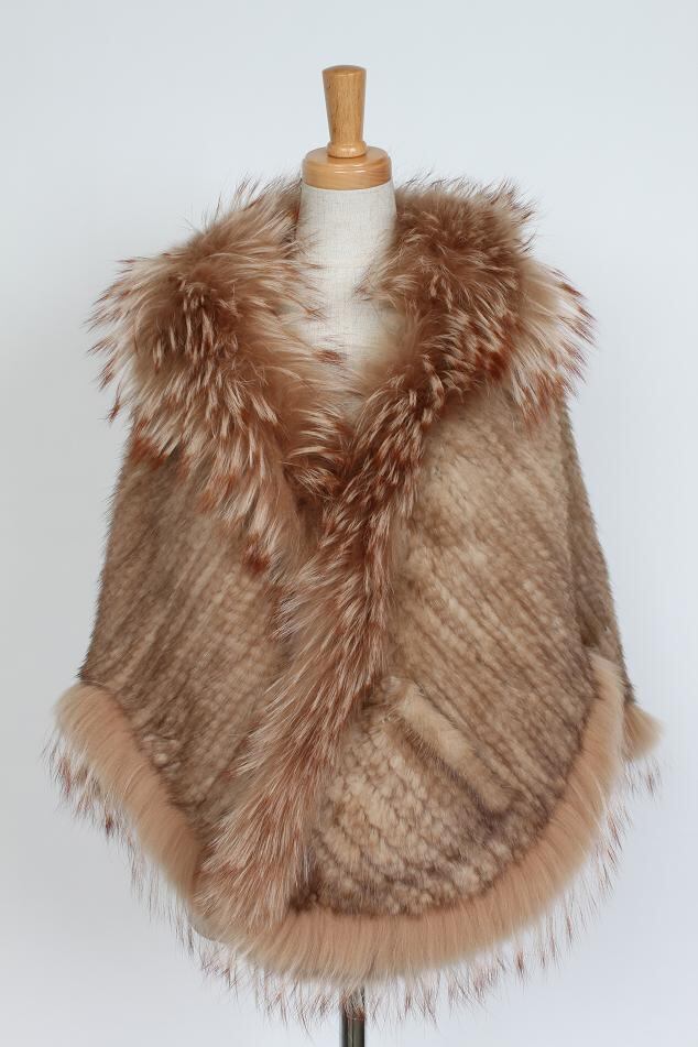 ミンク ラクーン 編み込み ファー ケープ ライトブラウン 送料無料 レディース ギフト プレゼント