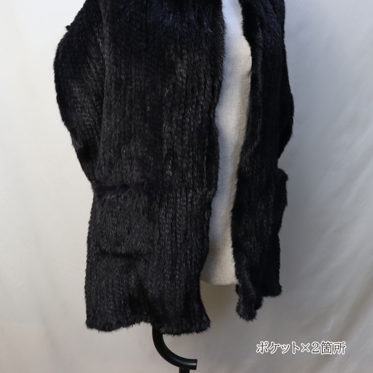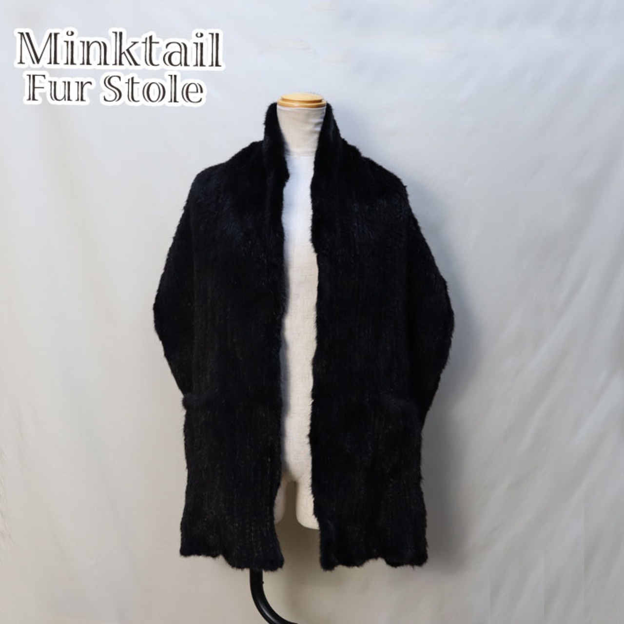 ミンク 編み込み 大判 ファー ストール ポケット付 ブラック 送料無料 レディース ギフト プレゼント MTHHM1