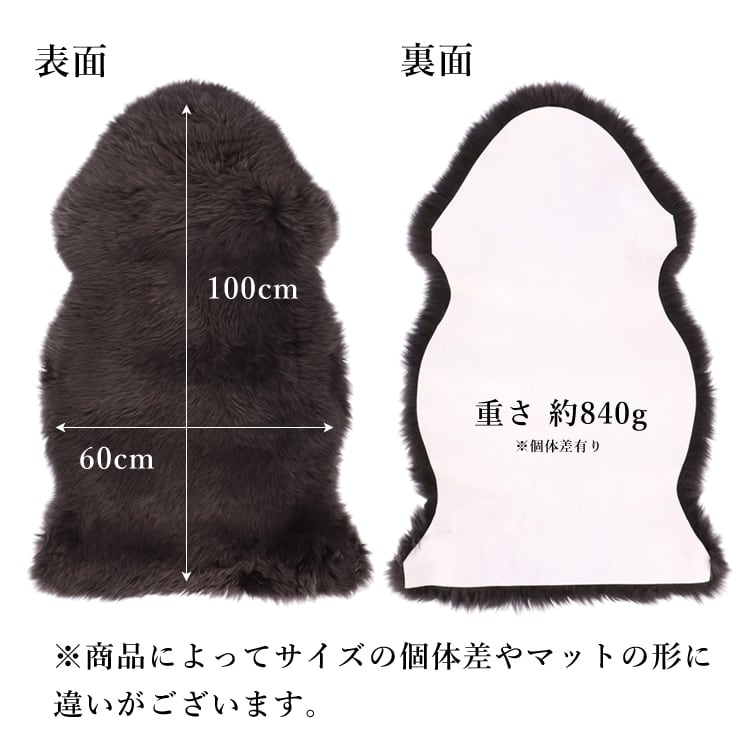 【サイズ(最大部を計測)】毛を含む:横幅約100cm 縦幅約60cm ※個体差があります 【重さ】約840g ※個体差があります 【素材】ムートン 【裏地】無し 【生産国】中国