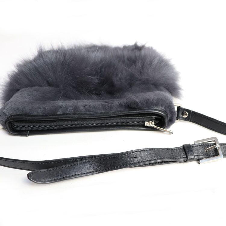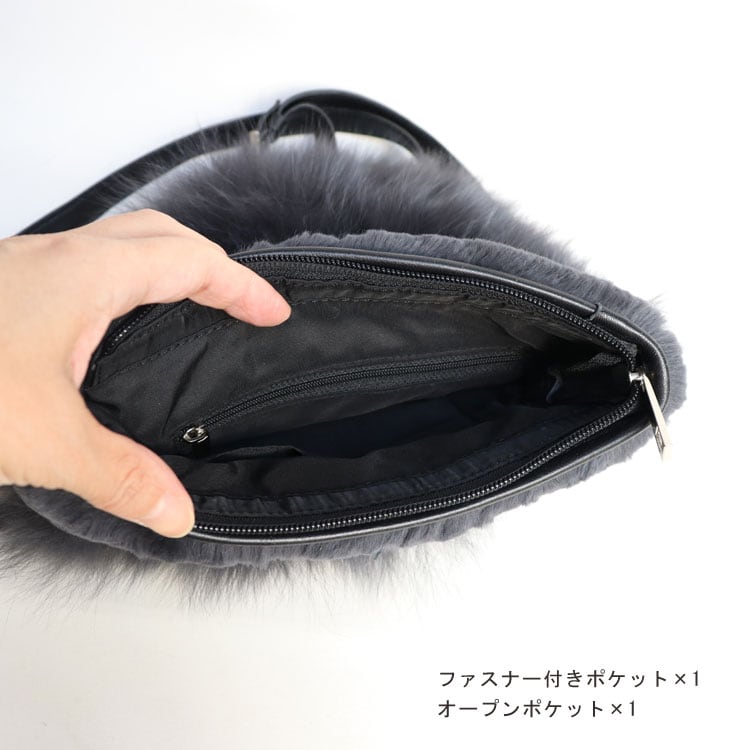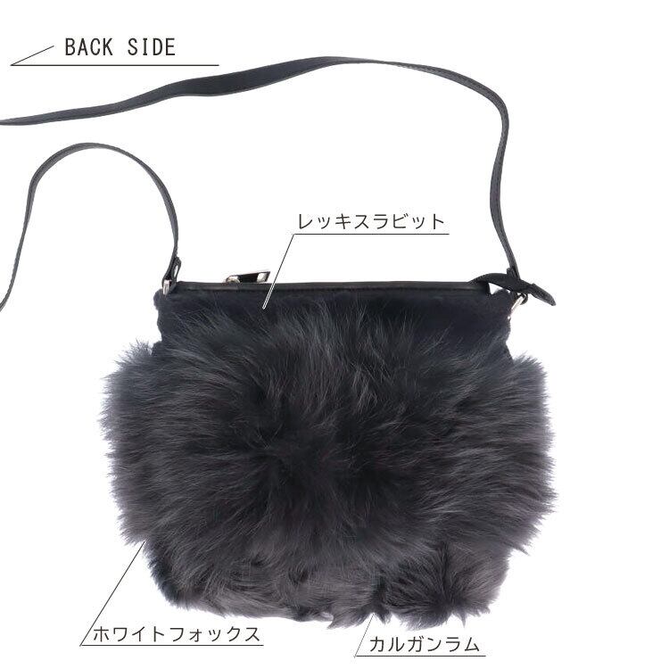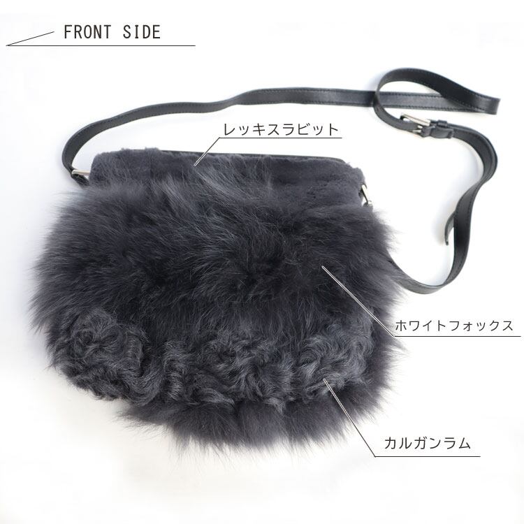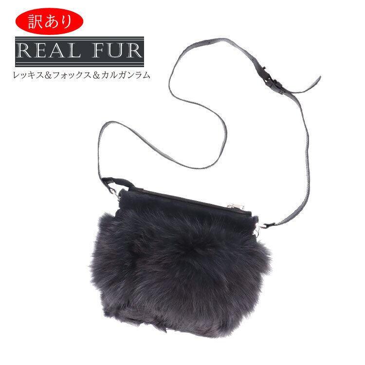 訳あり バッグ レディース リアルファー フォックス レッキス ラム ショルダーバッグ ダークグレイ アシンメトリー 送料無料 ギフト プレゼント MX472N