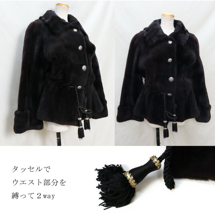 ヌートリア ファー ジャケット 2way コート ブラウン系 ブラック フリル エスニック 送料無料 レディース ギフト プレゼント