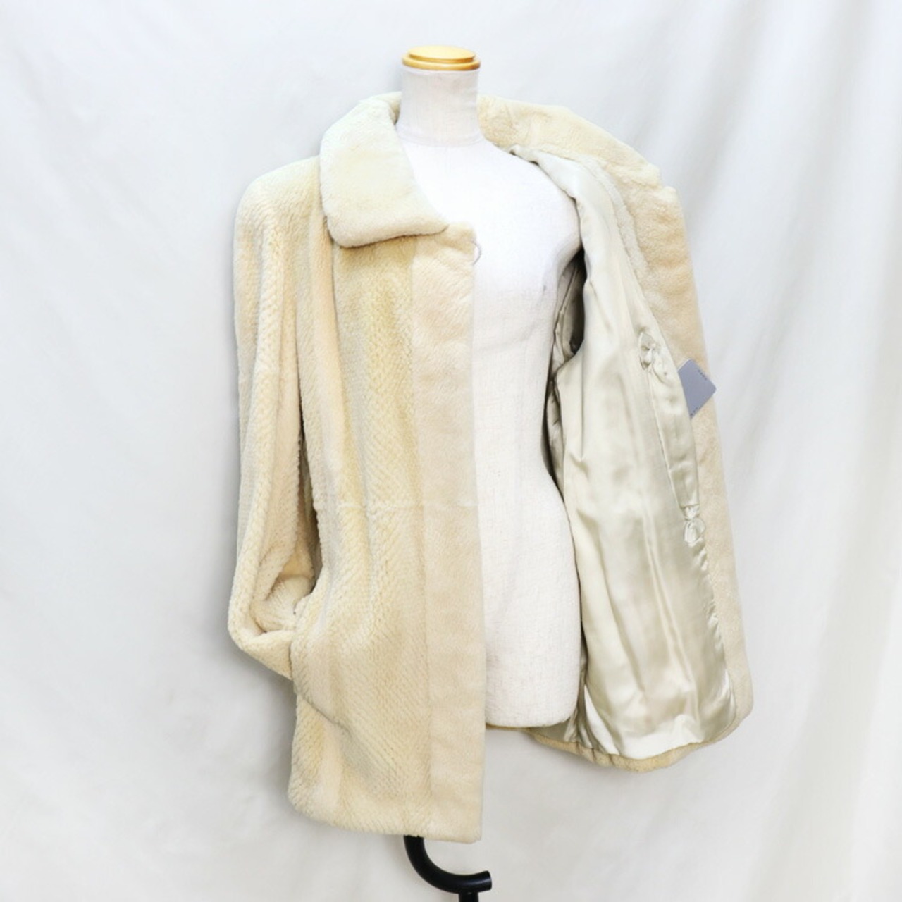 【サイズ(最大部を計測)】着丈約73cm 身幅約105cm 肩幅約38cm 袖丈約61cm 【重さ】約970g 【内側ポケット】1つ 【外側ポケット】2つ 【留め具】ホック×2、ボタン×1 【裏地】有り 【素材】ヌートリア
