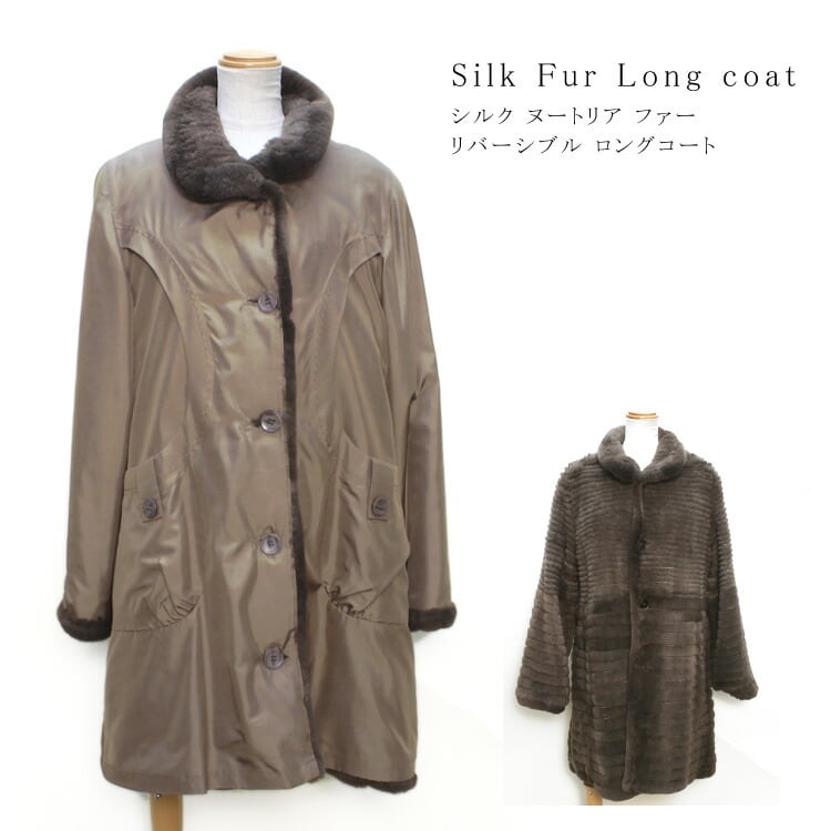 ヌートリア ファー ・ シルク リバーシブル コート ベージュ 送料無料 レディース ギフト プレゼント