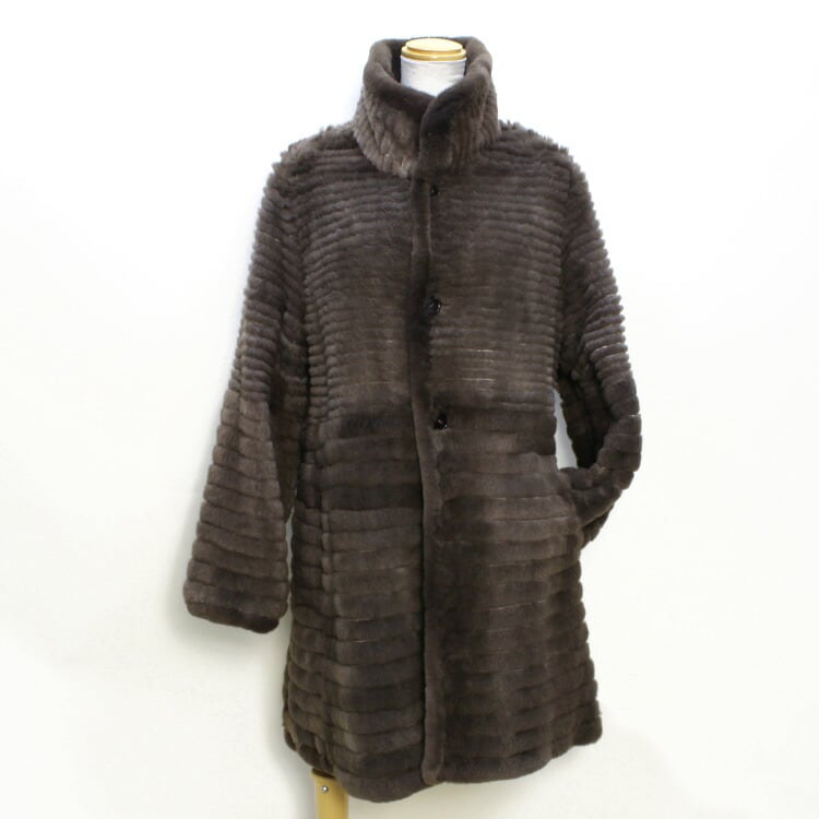【サイズ(最大部を計測)】Mサイズ相当:着丈約89cm 身幅約108cm 肩幅約40cm 袖丈約62cm 【重さ】約920g 【留め具】裏表:各ボタン×5 【素材】ヌートリア、シルク 【内側ポケット】2つ 【外側ポケット】2つ 【裏地】有り