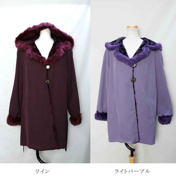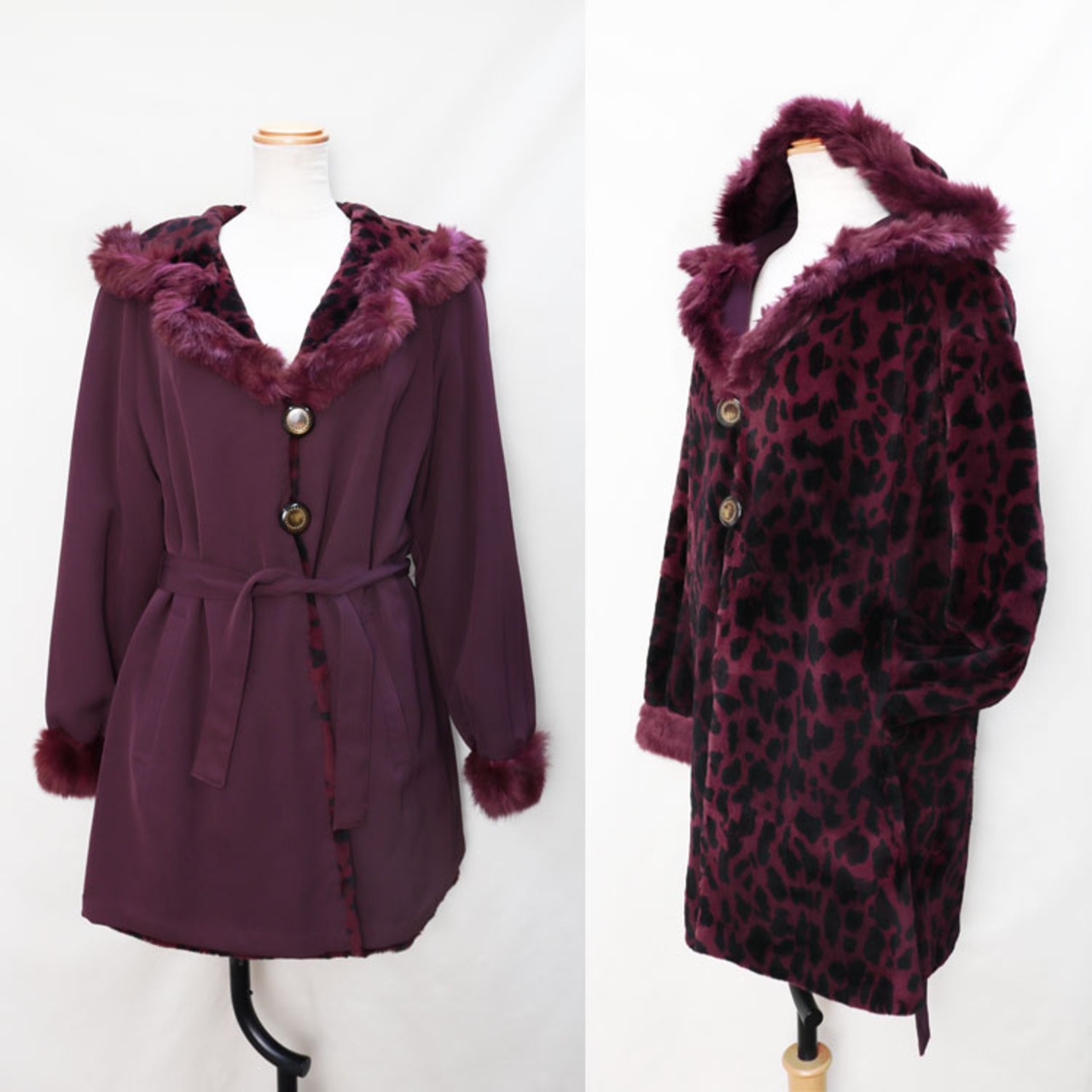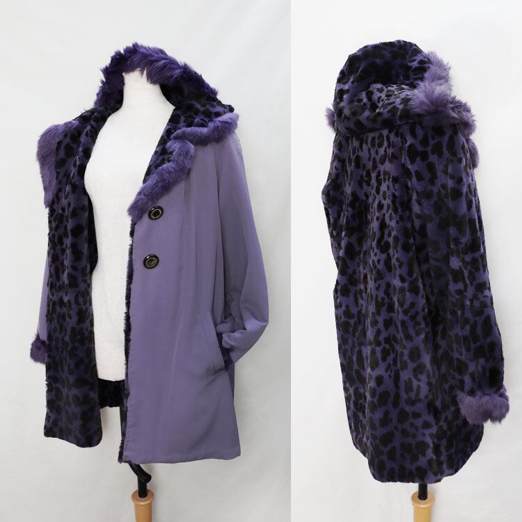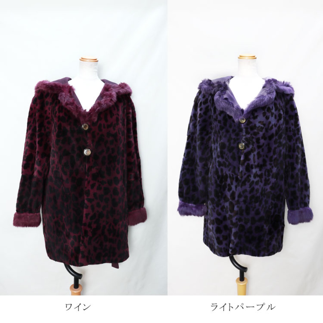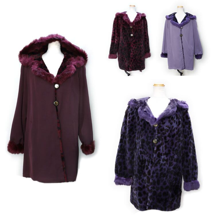 OP02REA オポッサム ファー リバーシブル ジャケット レオパード柄 フード付 レッド パープル ヒョウ柄 送料無料 レディース ギフト プレゼント