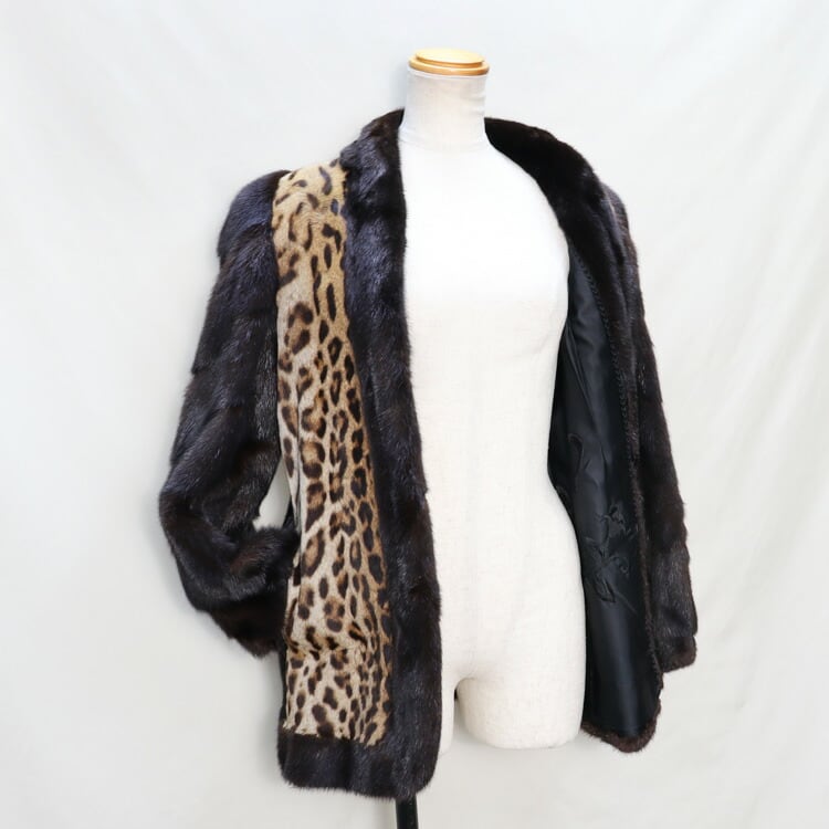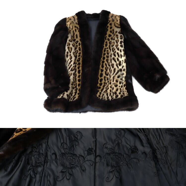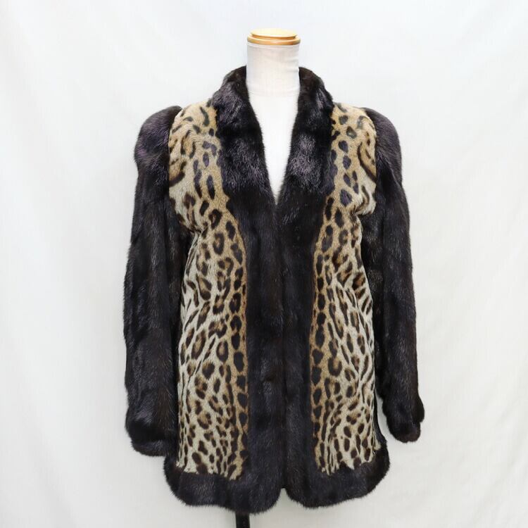 ミンク ・ オセロット ファー ジャケット レオパード アニマル柄 ヒョウ柄 切り替え 送料無料 【国際野生希少動植物登録済み】 レディース ギフト プレゼント