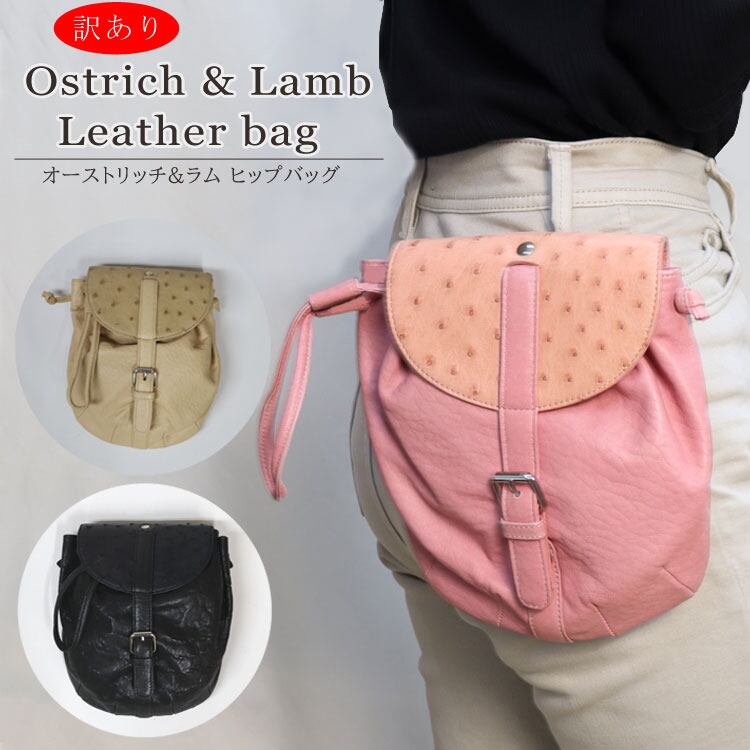 訳あり バッグ レディース オーストリッチ ラム レザー 革 ウエストポーチ ヒップ ベルト バッグ ギフト プレゼント