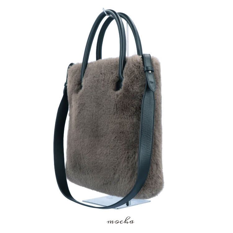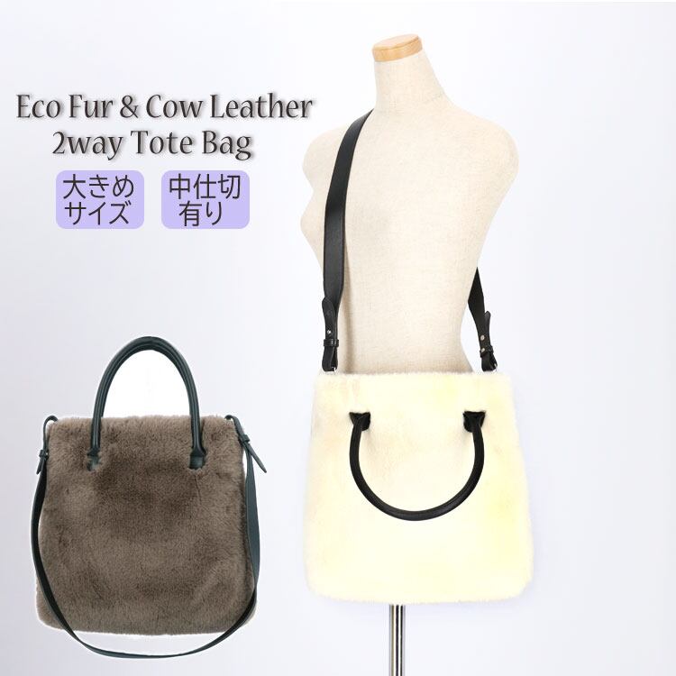 ファーバッグ 2WAY エコファー トートバッグ ショルダーバッグ 斜め掛け カウレザー モカ オフホワイト 送料無料 レディース ギフト プレゼント