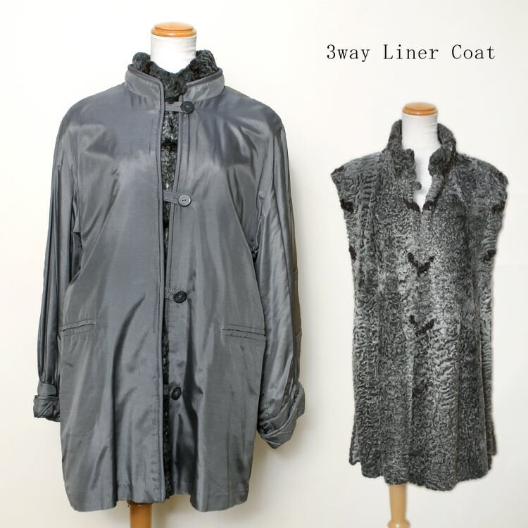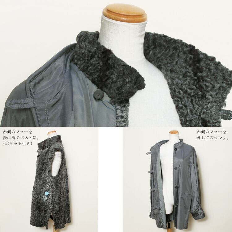訳あり ペルシャラム ファー ライナー 3way ノーカラー コート スプリングコート ジレ ベスト グレー 送料無料 レディース ギフト プレゼント