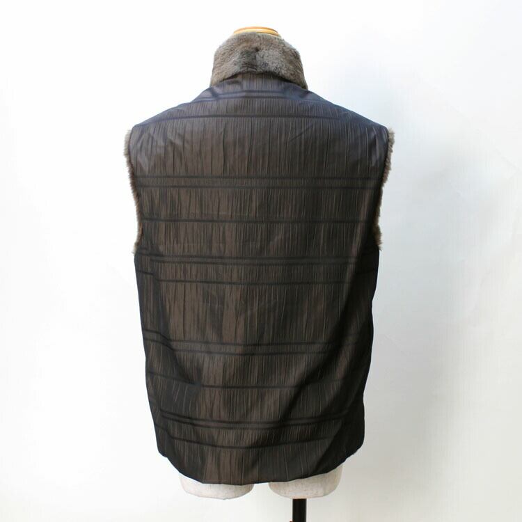 滑らかな毛質の高級素材、ヌートリアのファーベスト。メンズ向け仕様です。リバーシブルで真冬のインナー用、春のお出かけ用と長く着用できます。