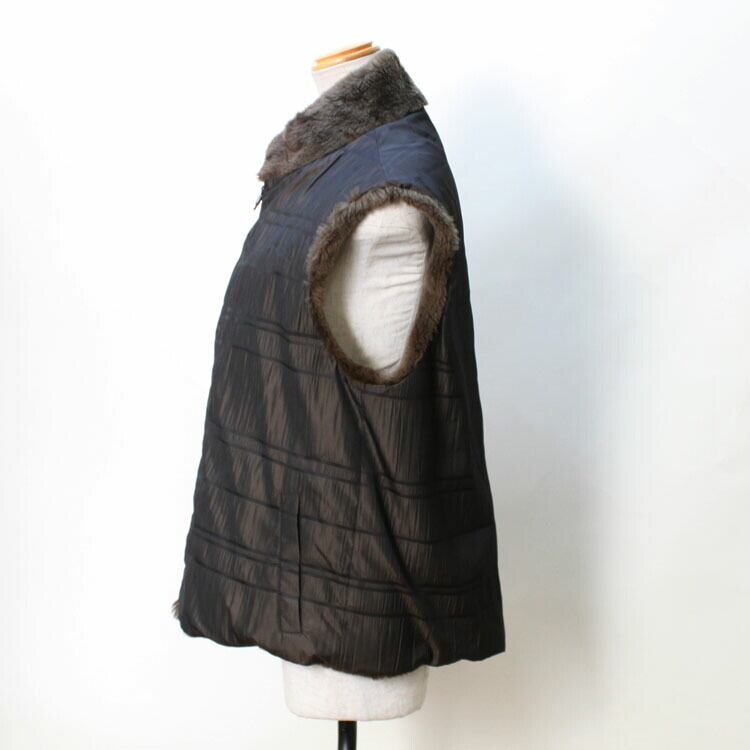 【サイズ(※毛を含む)】肩幅約43cm 身幅約97cm 着丈約63cm アームホール約46cm 【重さ】約635g 【ポケット】両面に各2つずつ、ファー面には更にファスナー付ポケット1つ 【留め具】ファスナー 【素材】ヌートリア、ポリエステル