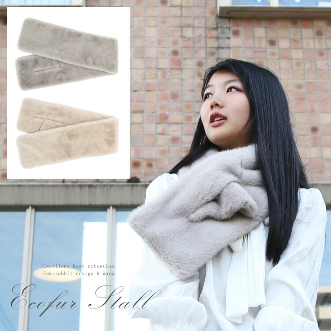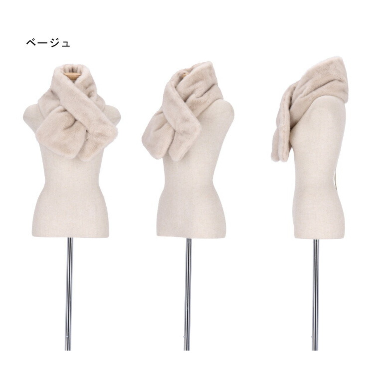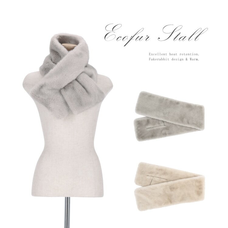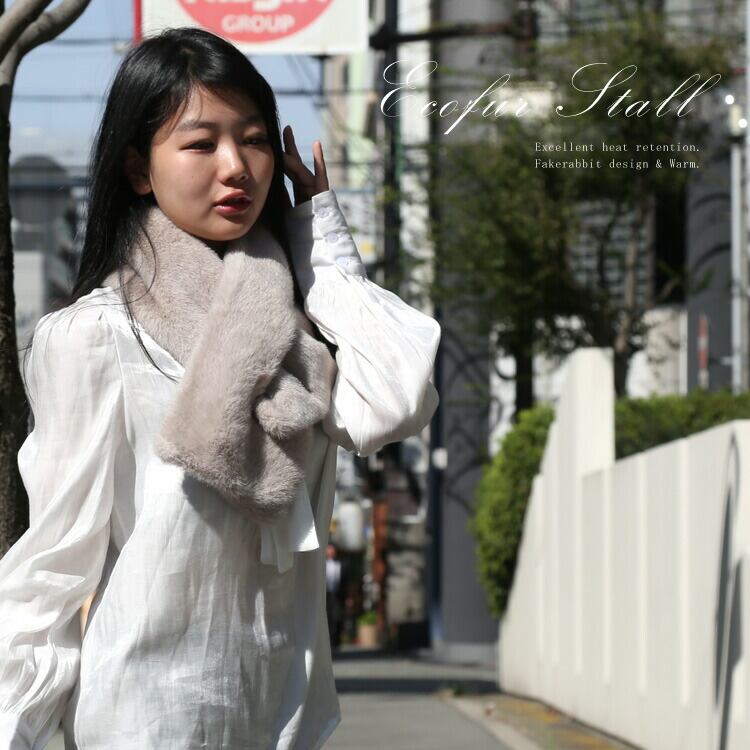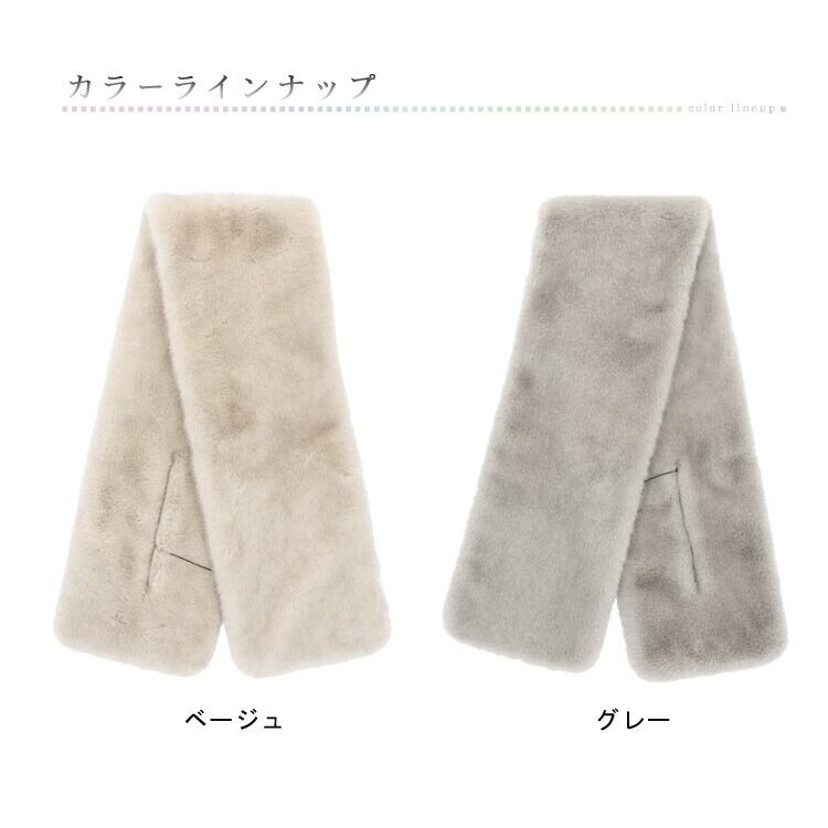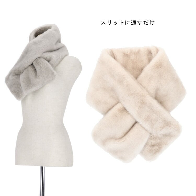 エコファー マフラー フェイクファー ティペット ラビット風 スリット グレー ベージュ レディース ギフト プレゼント ニュアンスカラー くすみカラー PO1331