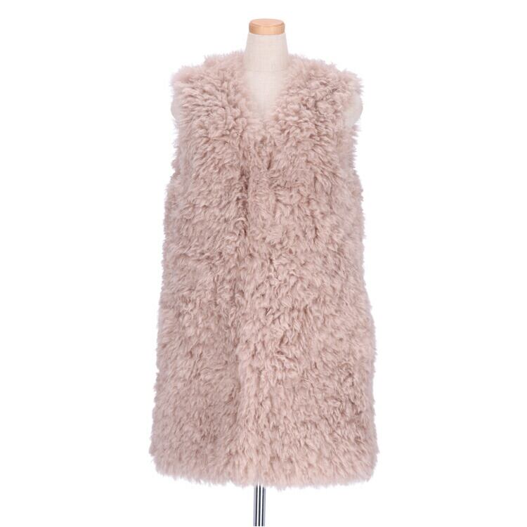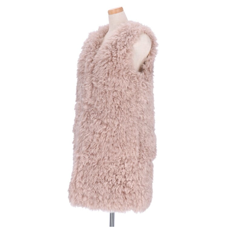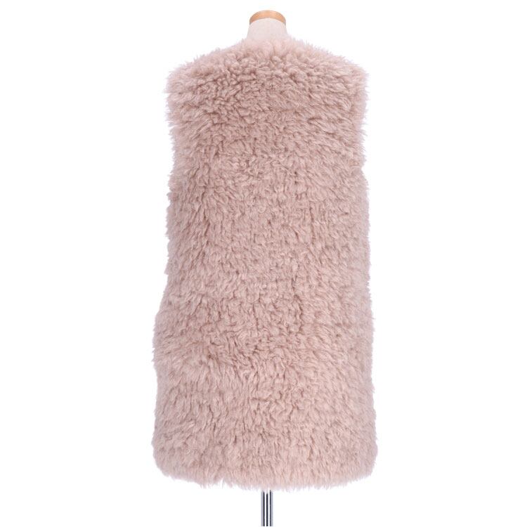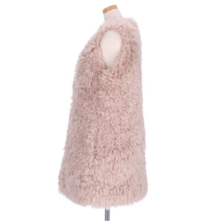 PO2148AGE1063 ラム風 エコ ファー ベスト フェイクファー ふわふわ ボリューミー グレーベージュ 送料無料 レディース ギフト プレゼント