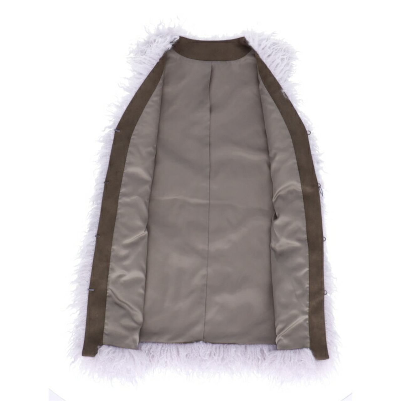 クルクルとしたカーリーな毛先が魅力的なチキャンラム風のファーベストです。厚みがあり防寒性も高く、それでいてエコファーによる軽さが嬉しい。オーソドックスなデザインでどの様なスタイリングにも合わせやすいです。リアルファーの見た目に合わせて作られたエコファーですが、エコファーならではの利点として、自然の毛皮には無い鮮やかな染色・発色、毛の長さの均一性によるバランスの良さ、ブラッシングによる簡単なお手入れなどが御座います。