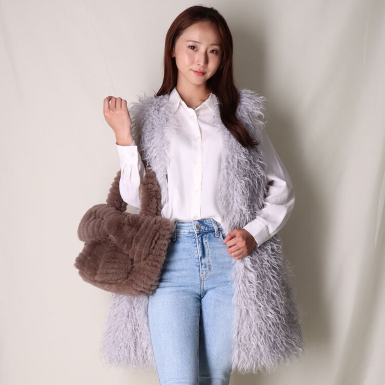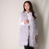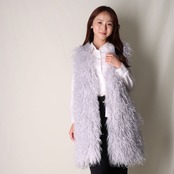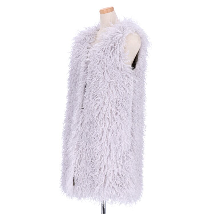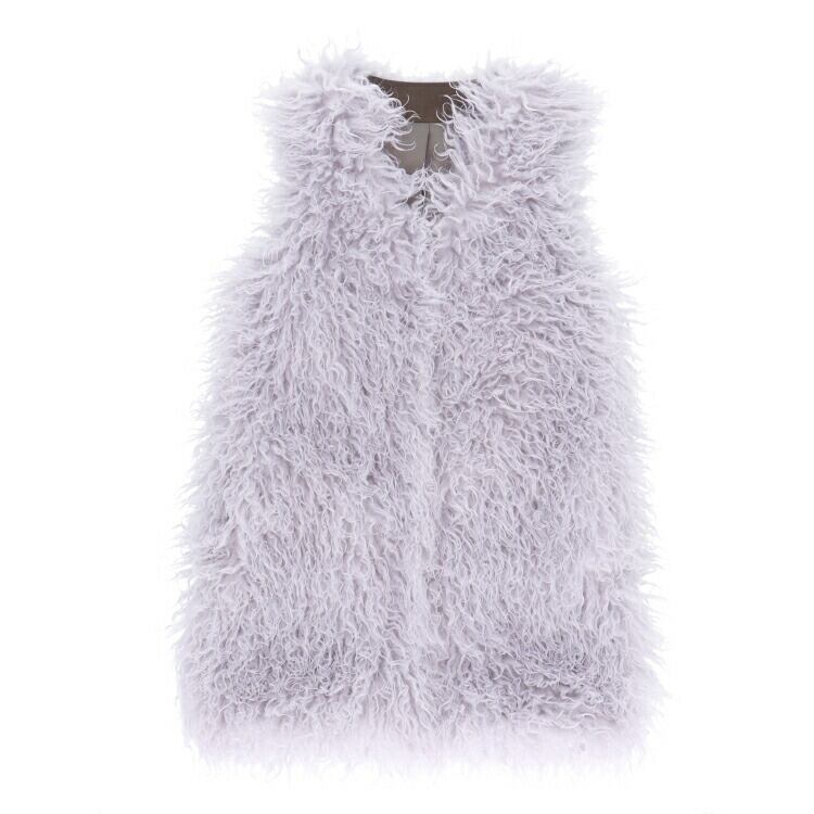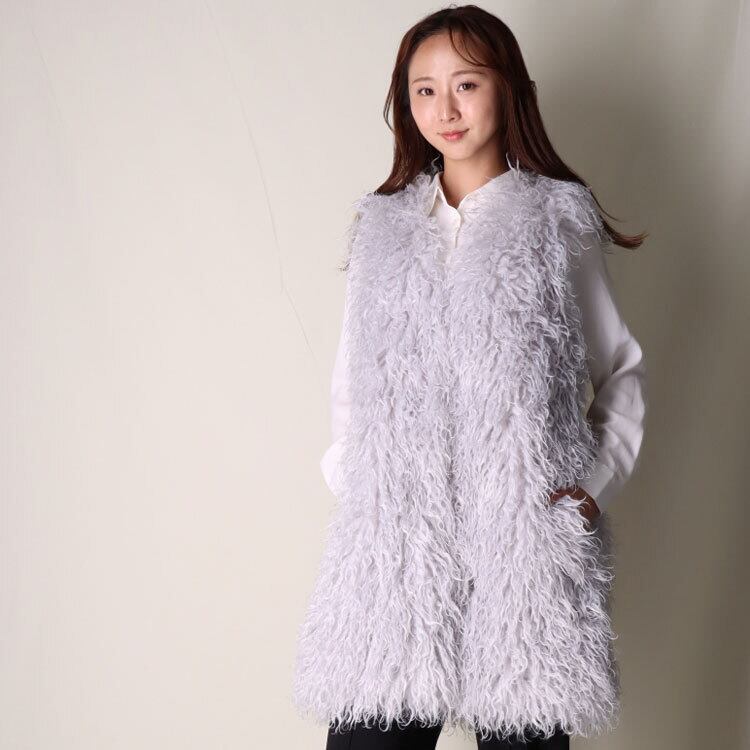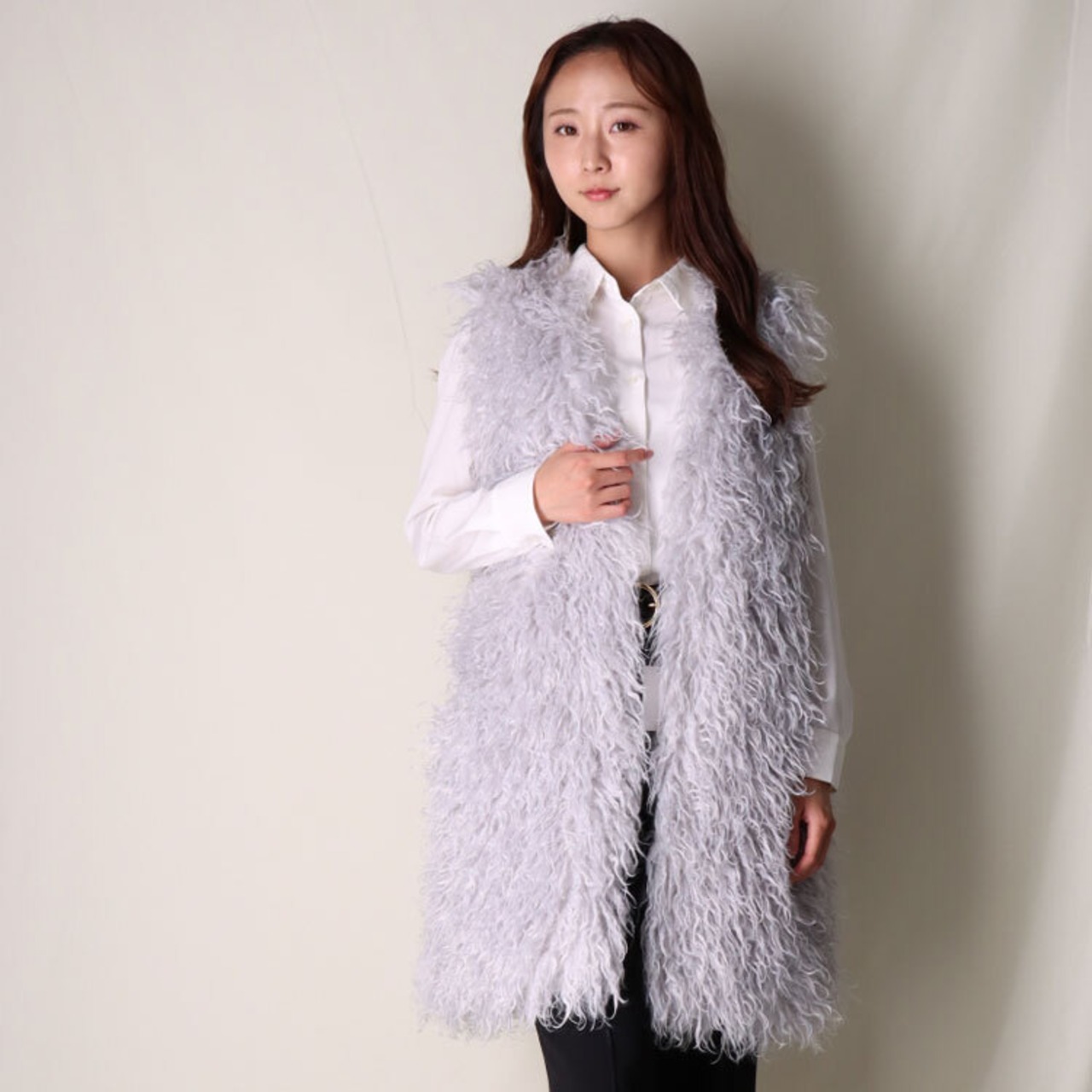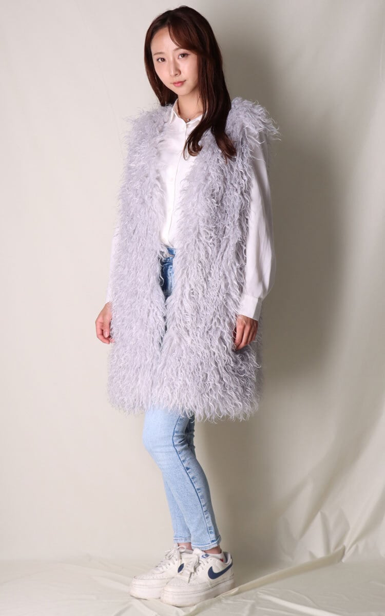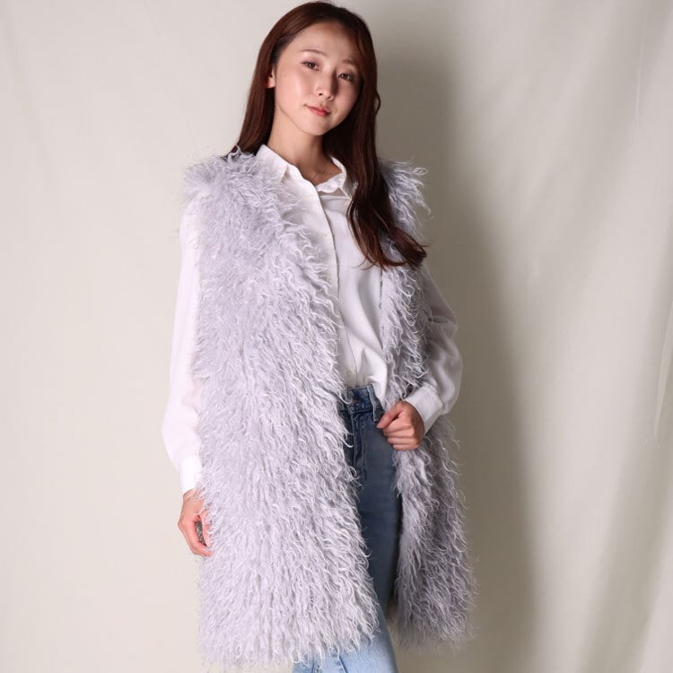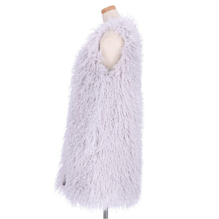 PO2148ALY1063 チキャンラム風 エコ ファー ベスト フェイクファー ふわふわ ボリューミー ライトグレー 送料無料 レディース ギフト プレゼント