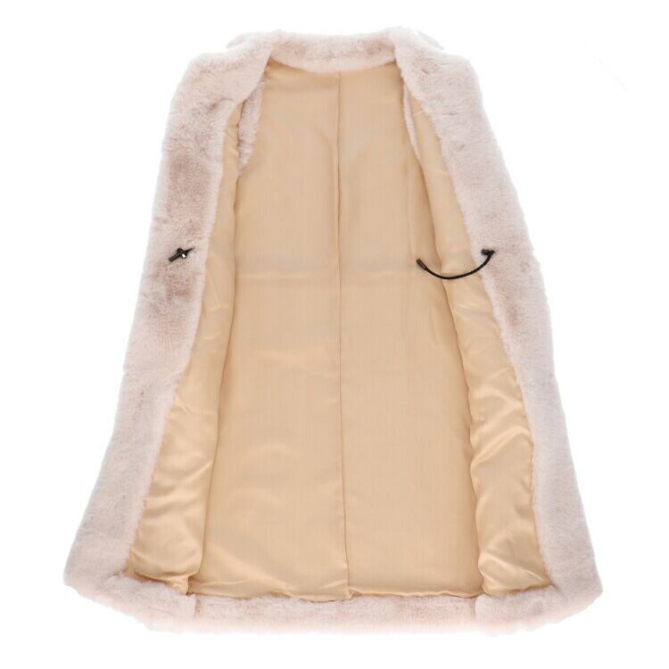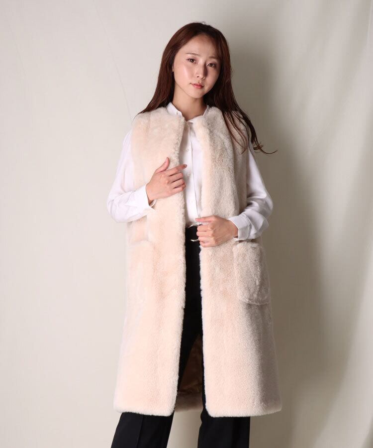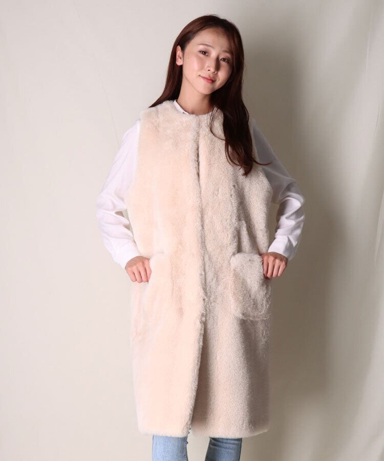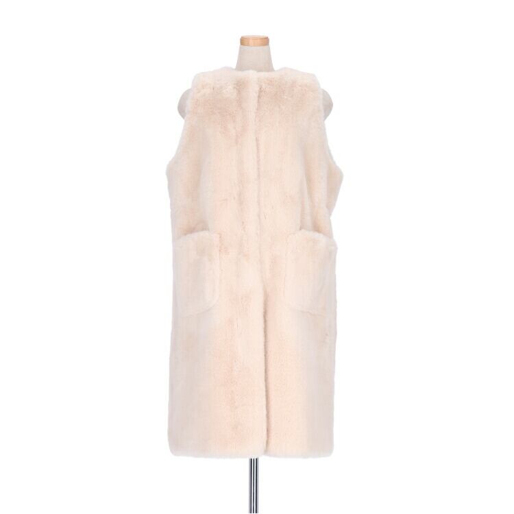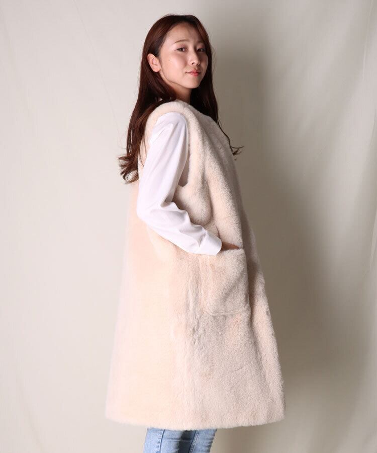 PO219FABE1063 レッキスラビット風 エコ ファー ドローストリング ロング ベスト ベージュ フェイクファー 送料無料 レディース ギフト プレゼント
