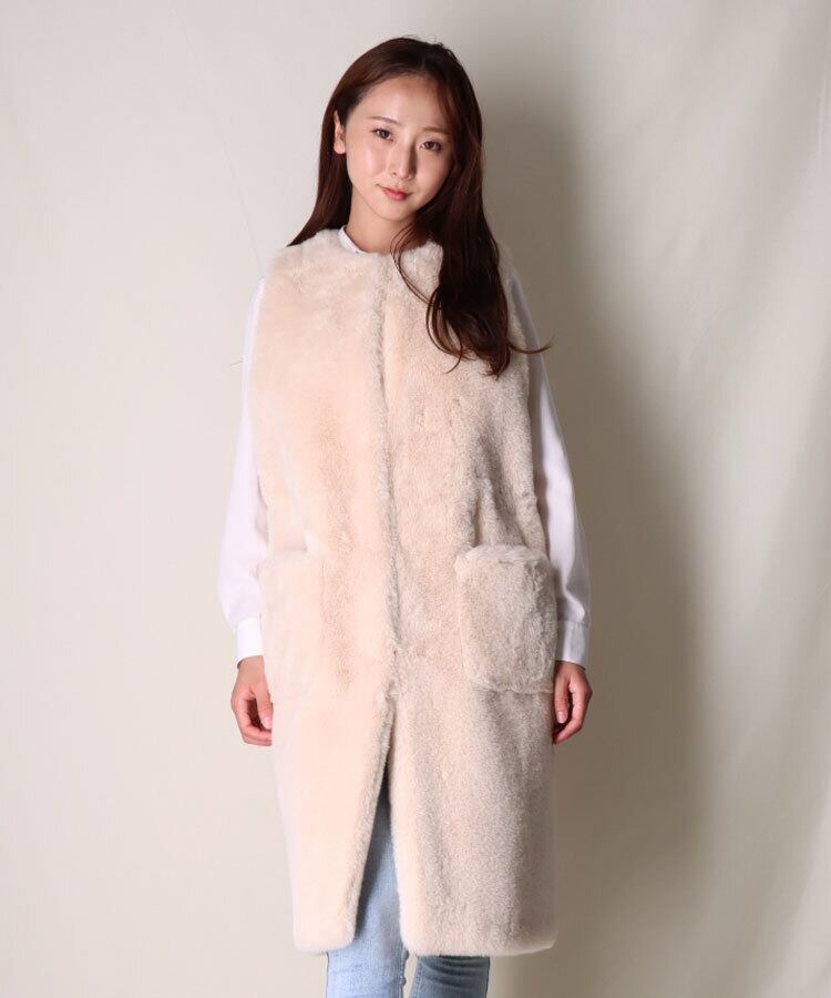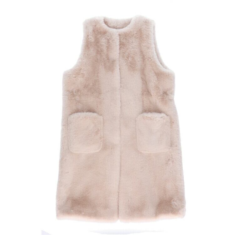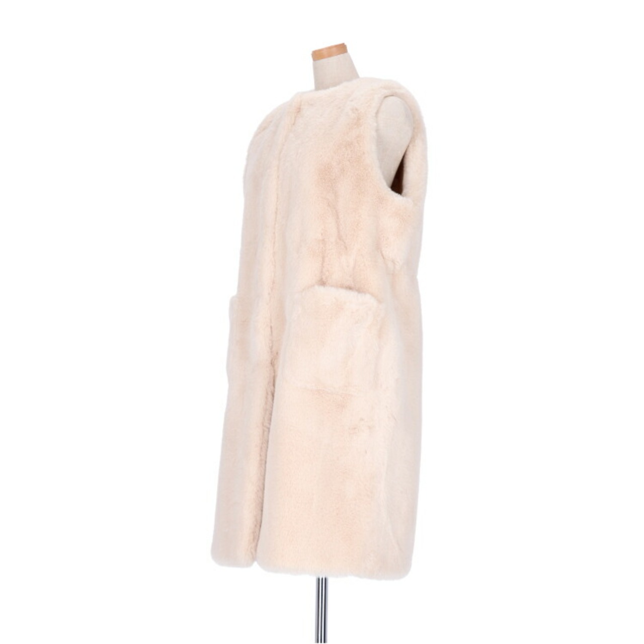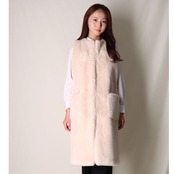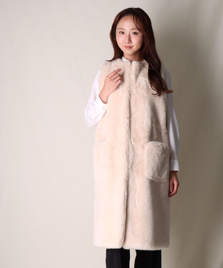 PO219FABE1063 レッキスラビット風 エコ ファー ドローストリング ロング ベスト ベージュ フェイクファー 送料無料 レディース ギフト プレゼント