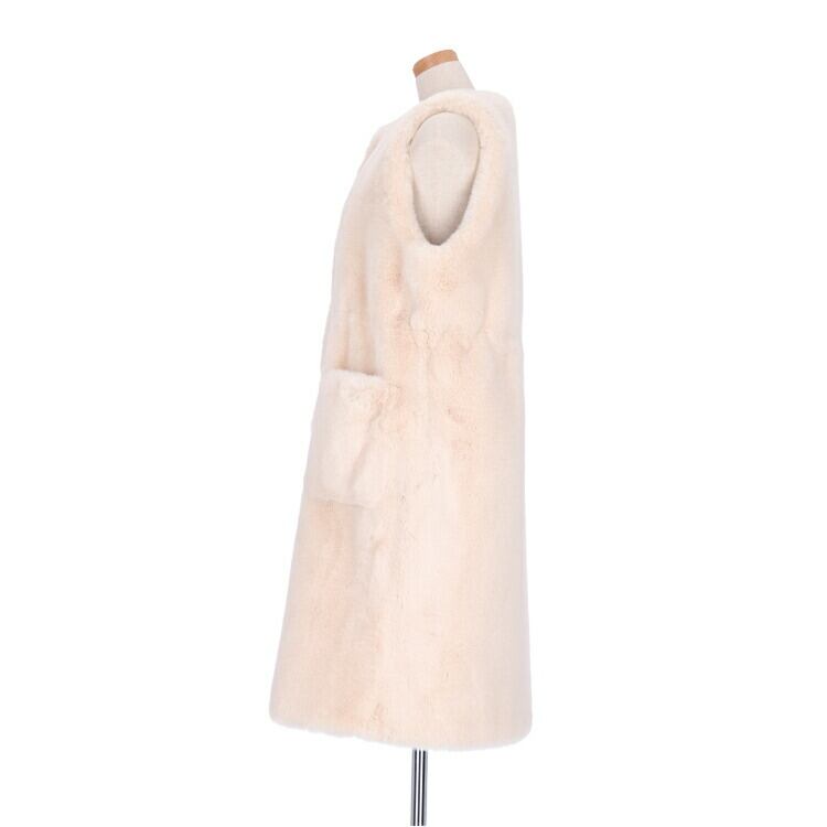 長年に渡ってファーを取り扱っている当店、エルベートが手掛けるエコファーシリーズ。本物に限りなく近い手触り、風合いの毛質をお手軽にお楽しみ頂けます。滑らかで高級感のあるレッキスラビット風のファーベスト。ウエスト部分にはドローストリングがあり、紐を締める事でより女性らしいシルエットに。フワッとしたゆったりスタイルとキュッと締まったスマートスタイルで使い分けができます。