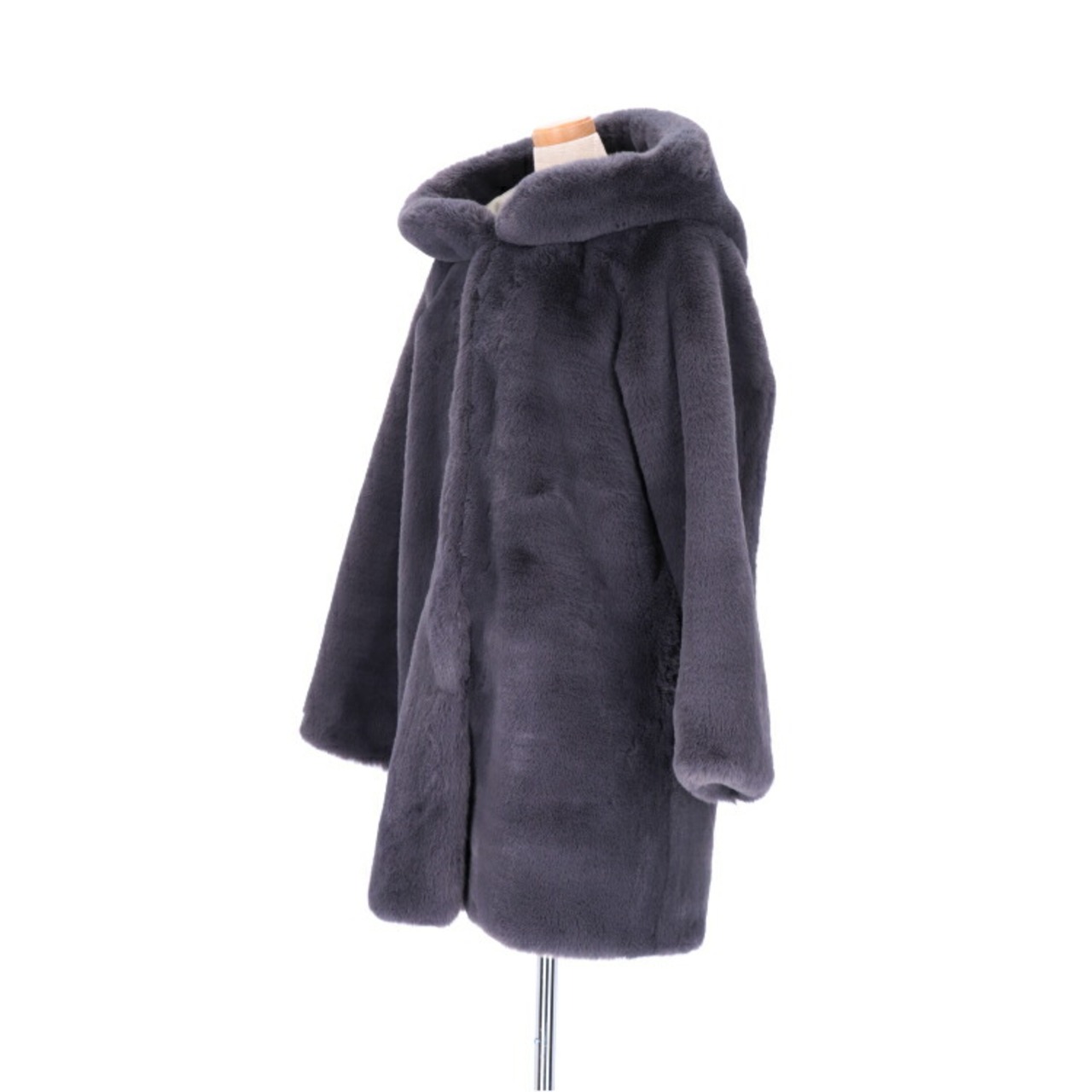 PO225EAGY1063 レッキスラビット風 エコ ファー コート フェイクファー フード付き ビッグシルエット オーバーサイズ グレー 送料無料 レディース ギフト プレゼント