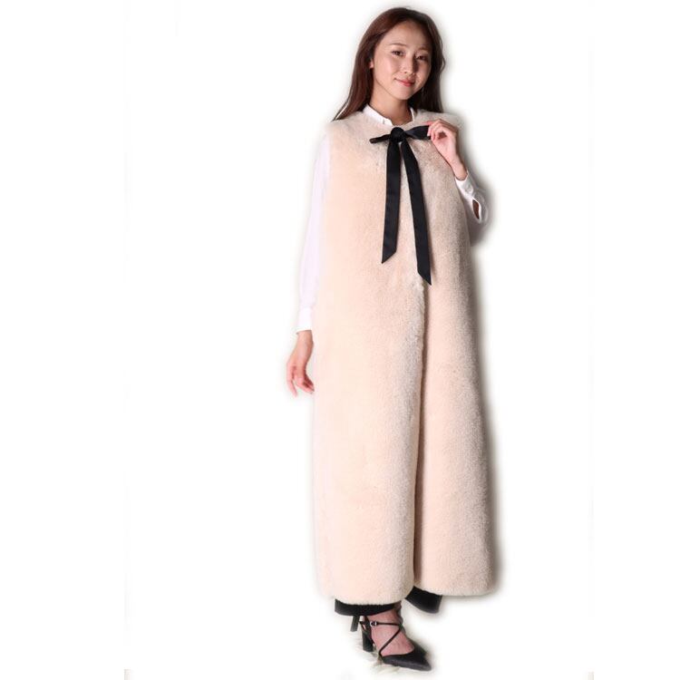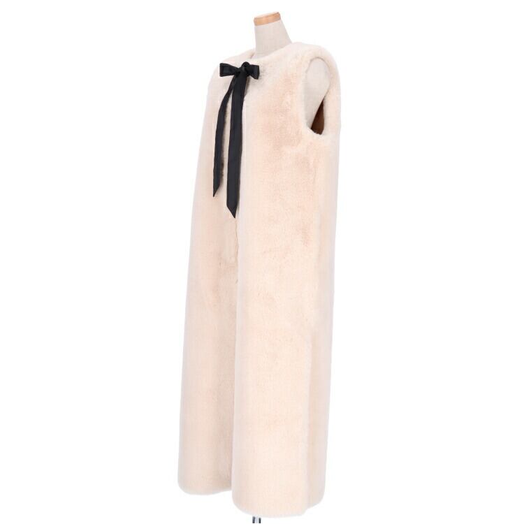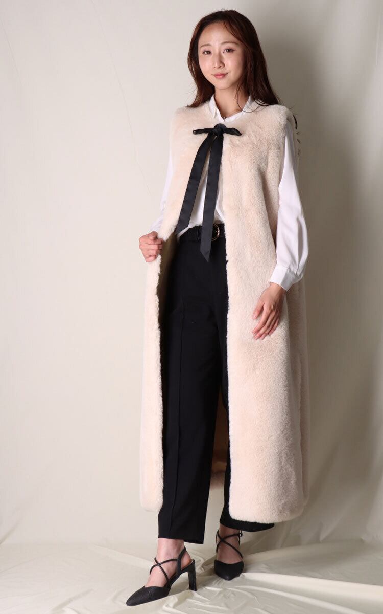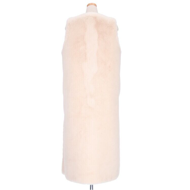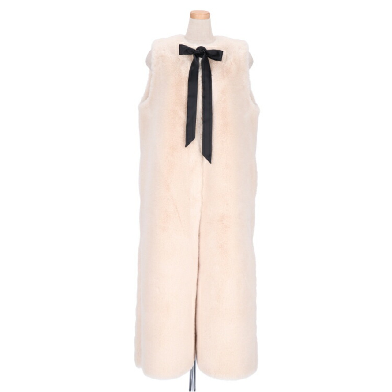 PO227JABE1063 レッキスラビット風 エコ ファー ロング ベスト ベージュ リボン付 フェイクファー 送料無料 レディース ギフト プレゼント