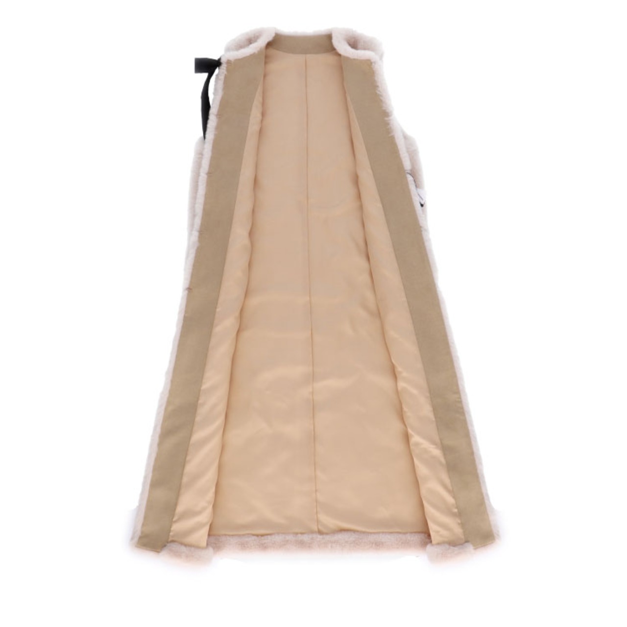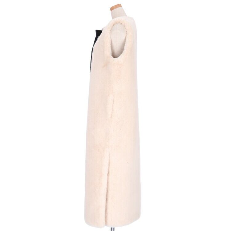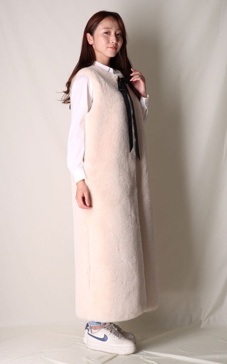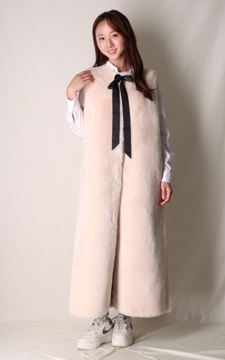 PO227JABE1063 レッキスラビット風 エコ ファー ロング ベスト ベージュ リボン付 フェイクファー 送料無料 レディース ギフト プレゼント
