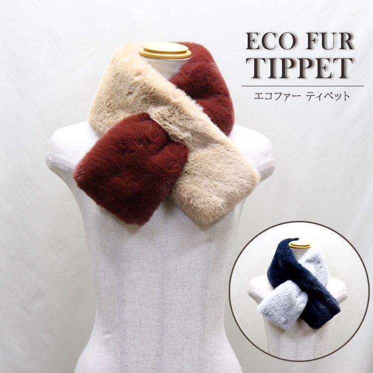 エコファー フェイクファー マフラー ティペットツートンカラー レディース ギフト プレゼント
