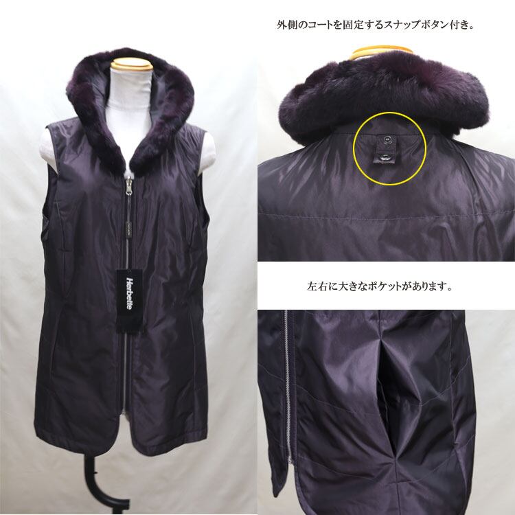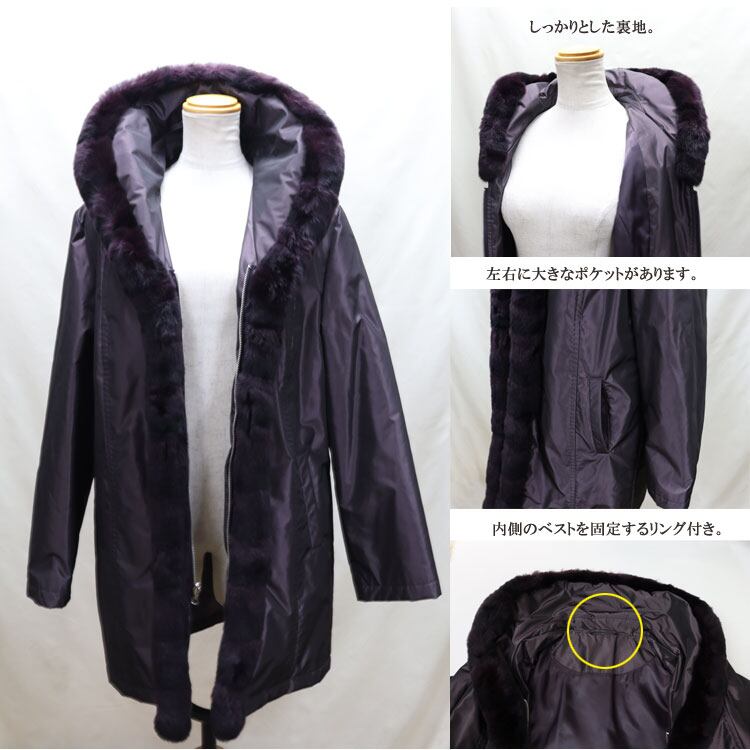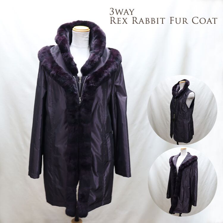 PR1128A レッキスラビット ファー ・ ポリエステル 3way ファーコート ベスト パープル 送料無料 レディース ギフト プレゼント
