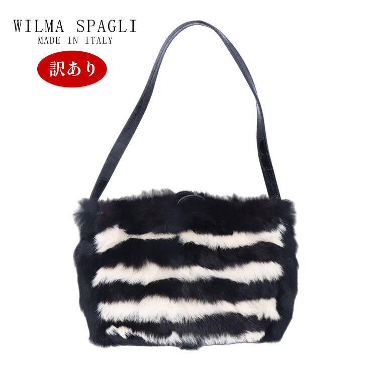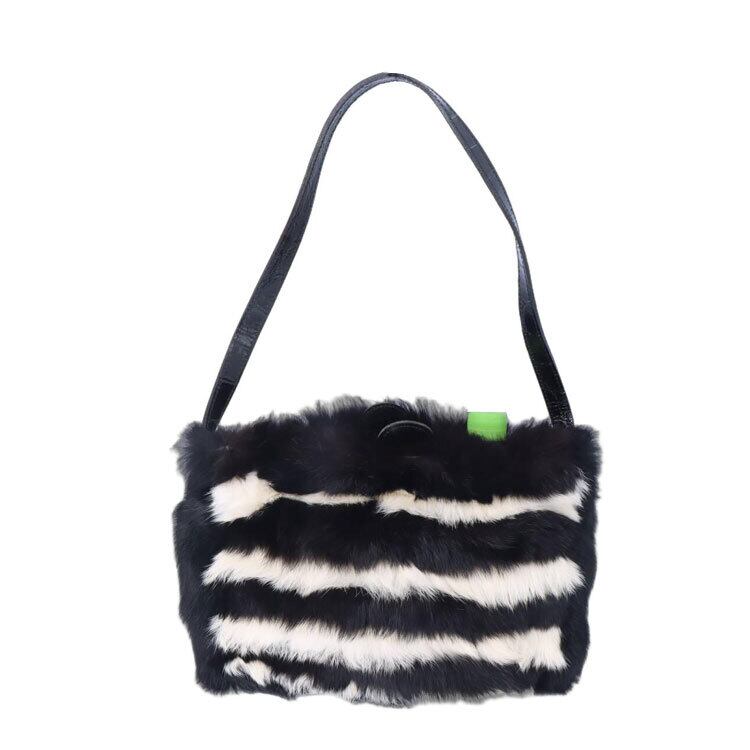 【訳あり】 イタリアブランド ラビット ファー ショルダーバッグ ボーダー柄 ブラック ホワイト 送料無料 レディース ギフト プレゼント RB0950
