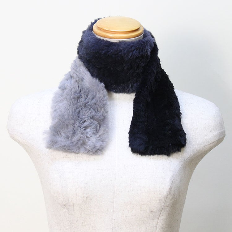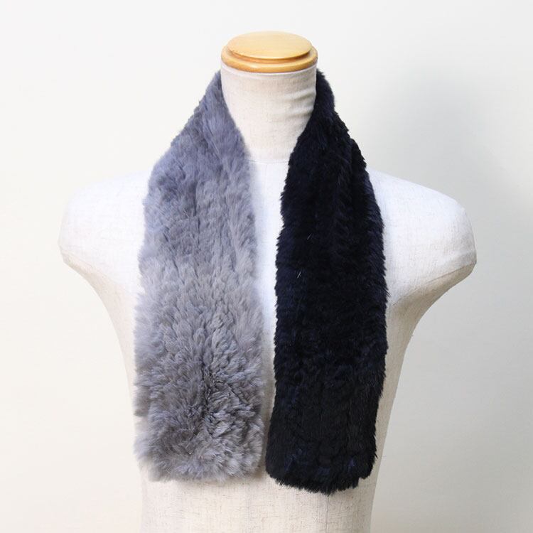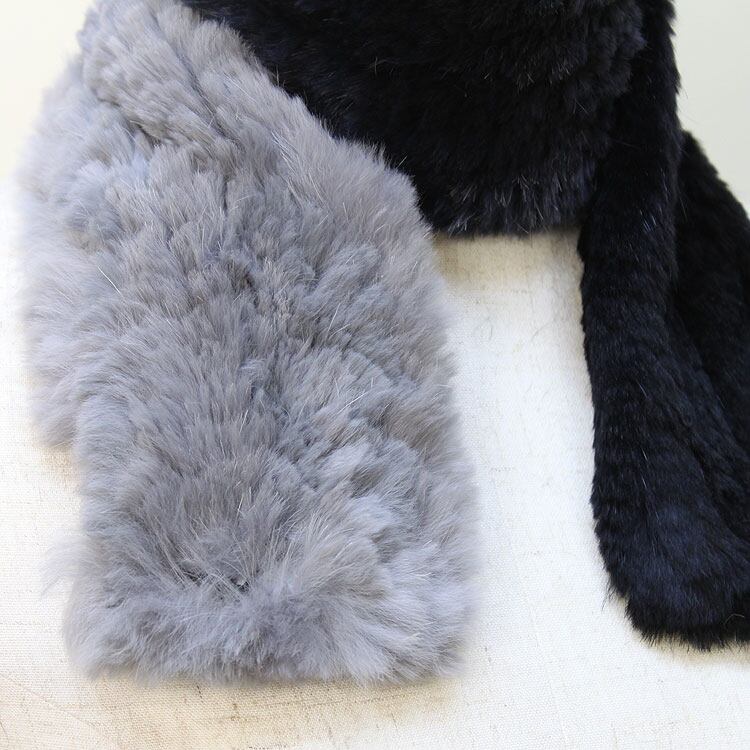 ラビット 編み込み ファー マフラーグレー ブラック レディース ギフト プレゼント