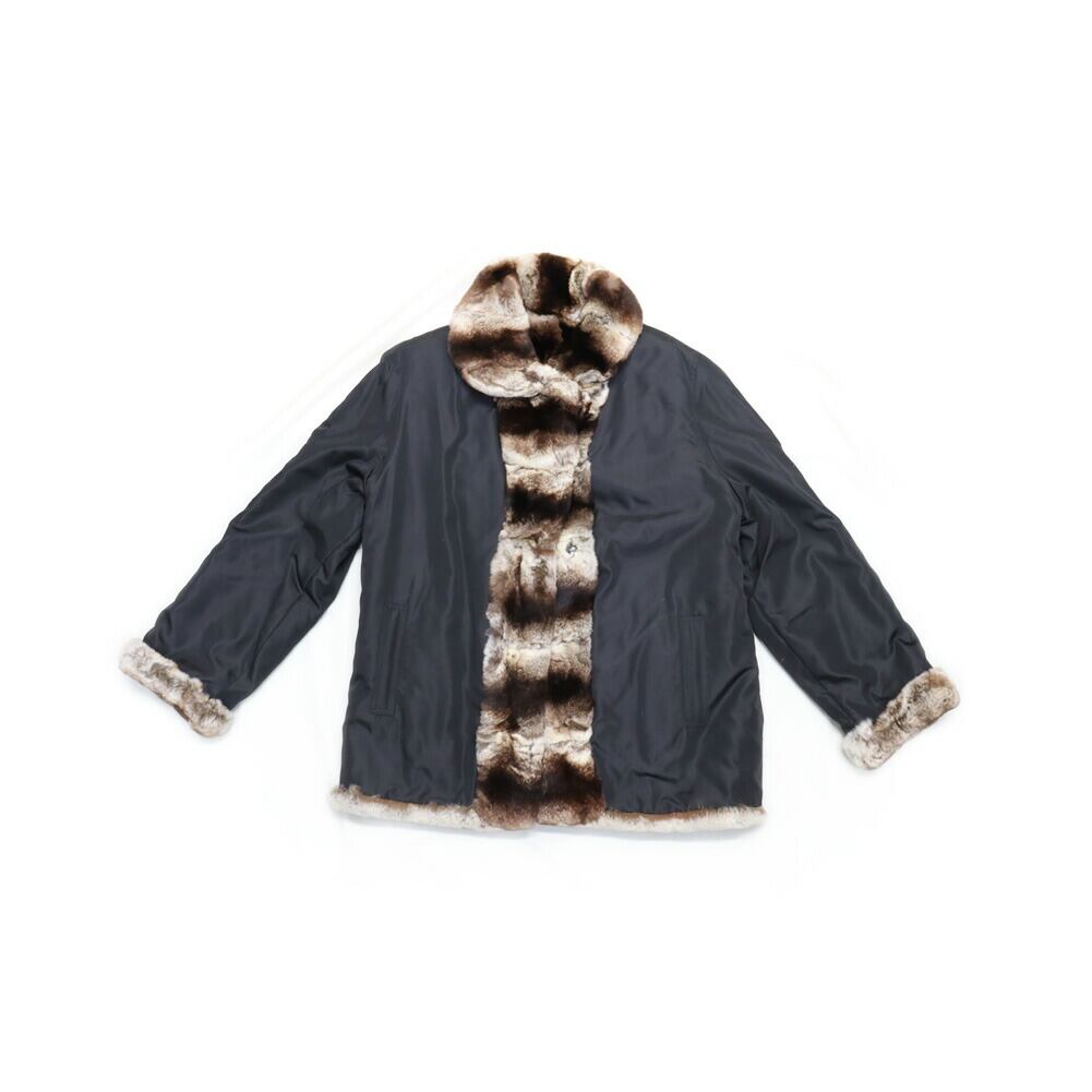 【サイズ(最大部を計測)】着丈約69cm 身幅約110cm 肩幅約45cm 袖丈約63cm 【重さ】約1315g 【内側ポケット】無し 【外側ポケット】2つ 【留め具】ホック×3 【裏地】無し(リバーシブル) 【素材】レッキスラビット、ポリエステル