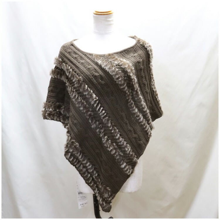 訳あり ラビット ファー ・ アクリルニット ポンチョ ブラウン レディース ギフト プレゼント