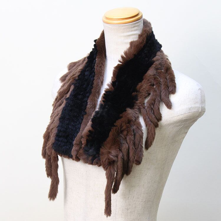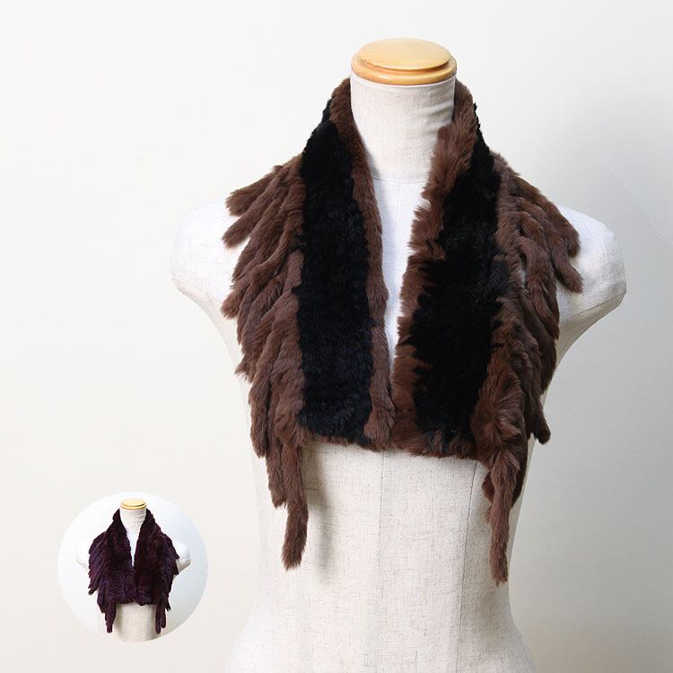 RB2611A ラビット ファー 編み込み マフラー サイドフリンジ レディース ギフト プレゼント