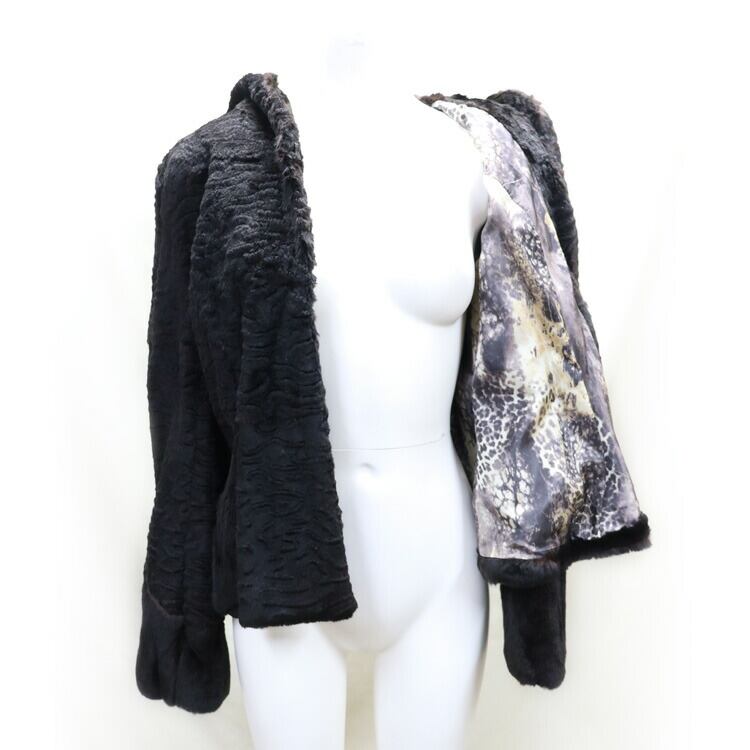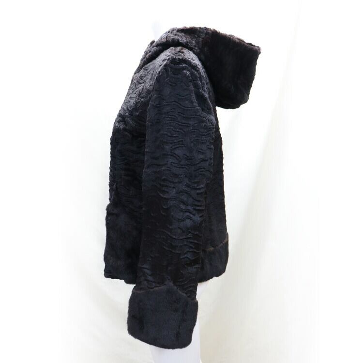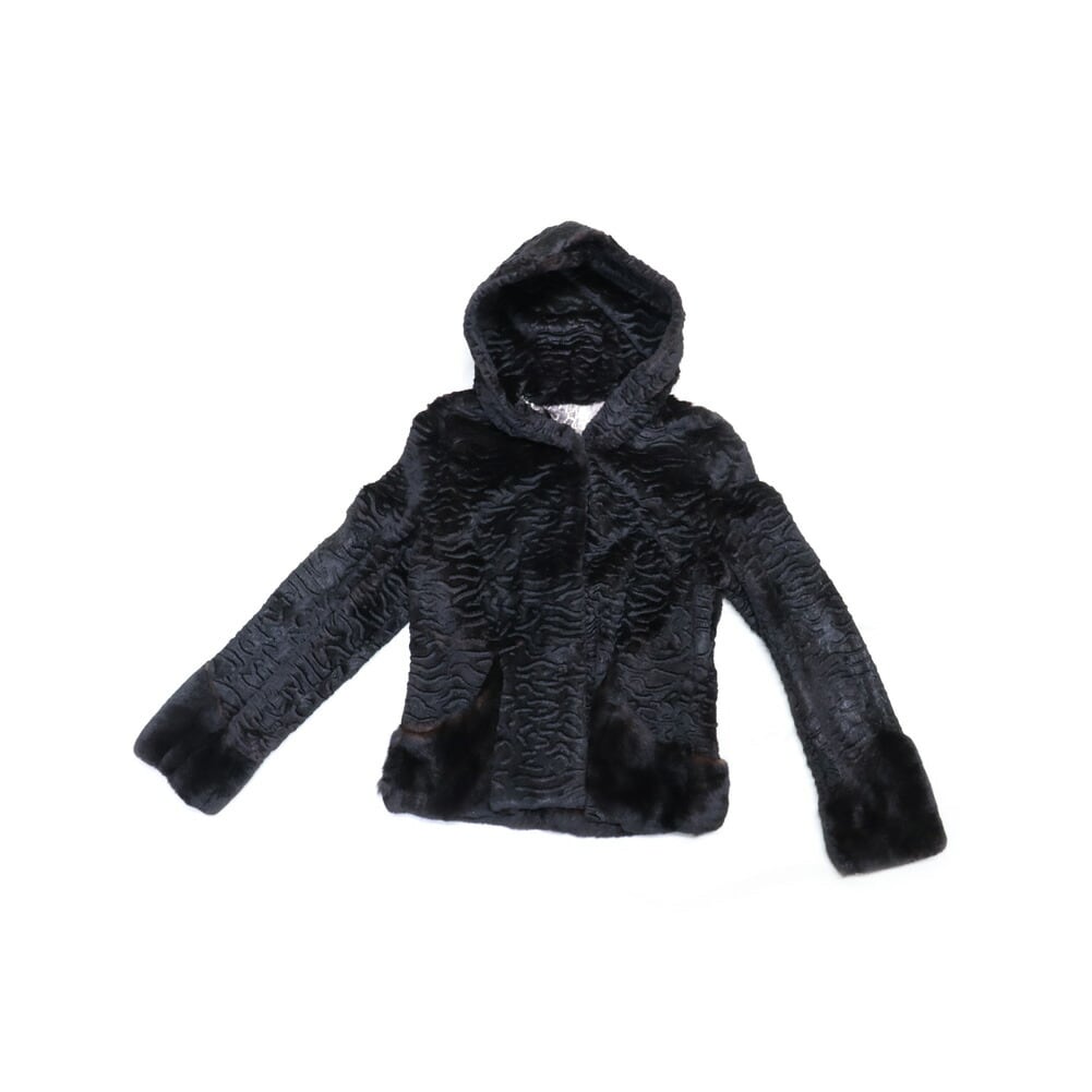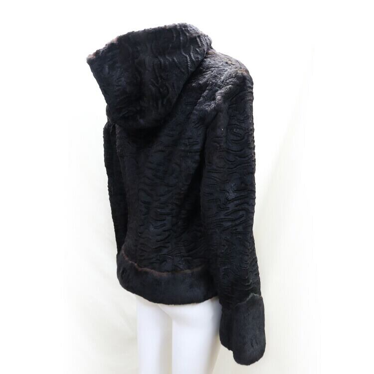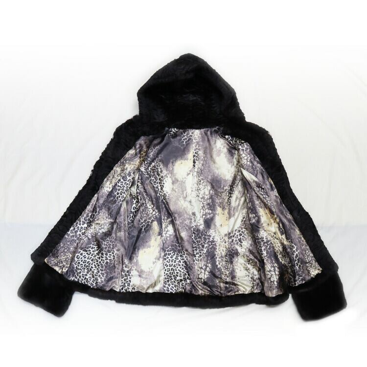 シェアード レッキスラビット ファー ジャケット 型押し柄入り フード付 ブラック 送料無料 レディース ギフト プレゼント