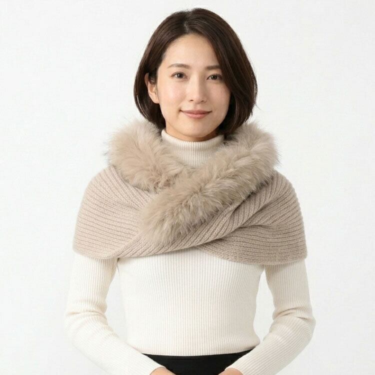 ラクーン ファー トリミング アクリルニット ねじれ スヌード ケープ ねじり編み タヌキ レディース ギフト プレゼント RB2841