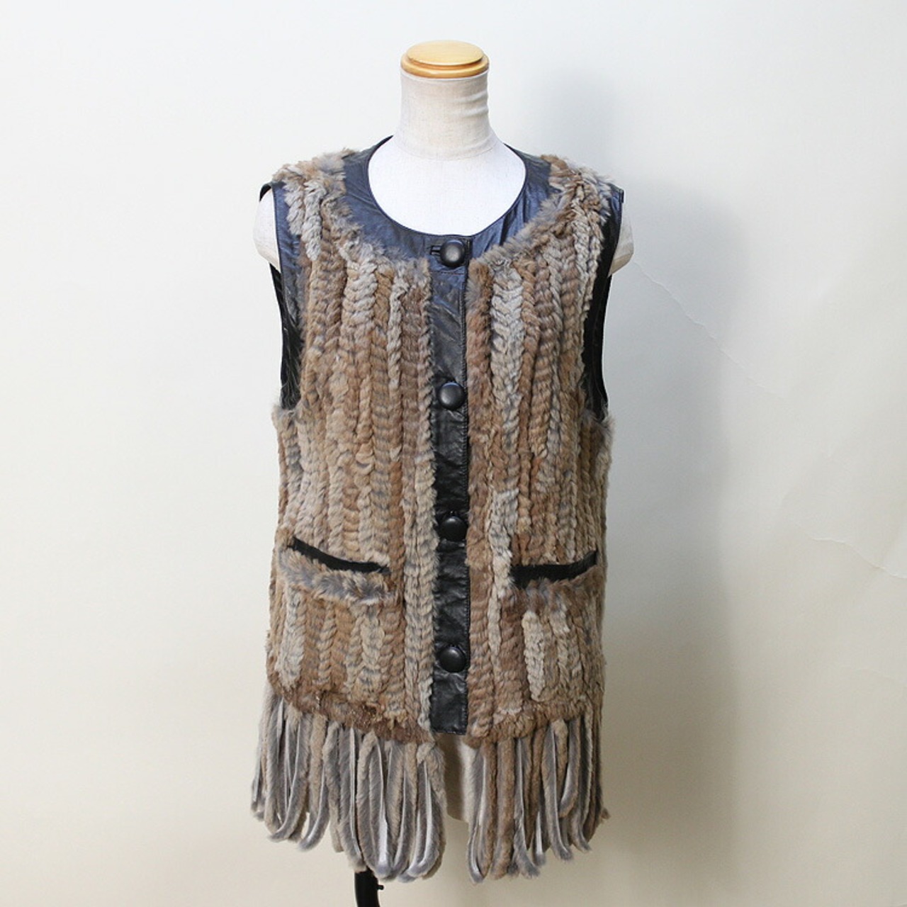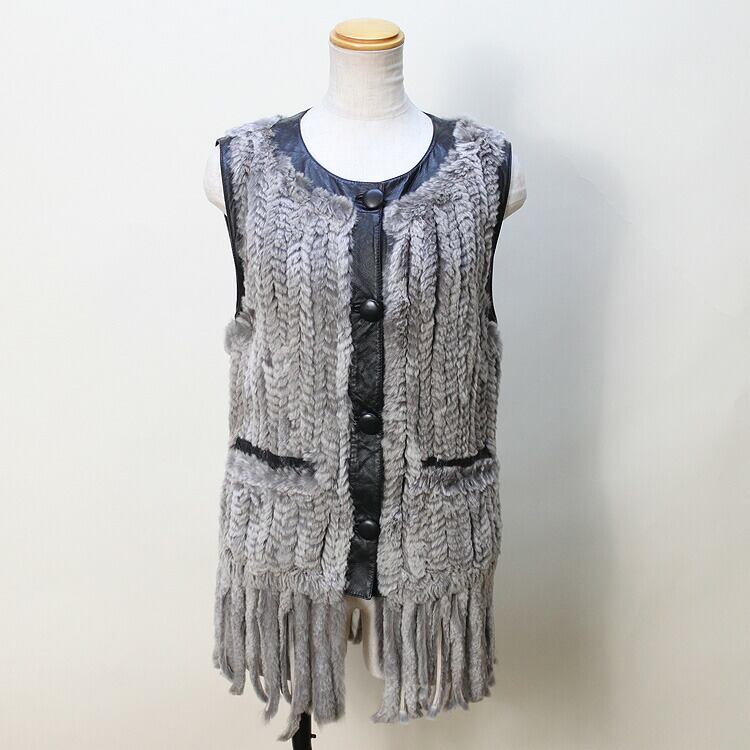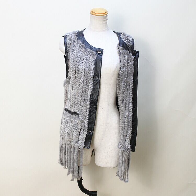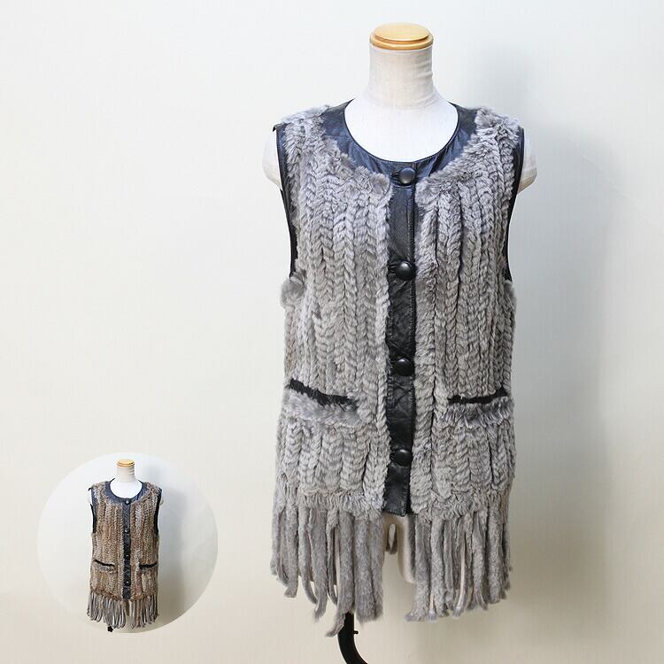 RB322CA シェアード ラビット ファー 編み込み ラム レザー ベスト 送料無料 レディース ギフト プレゼント