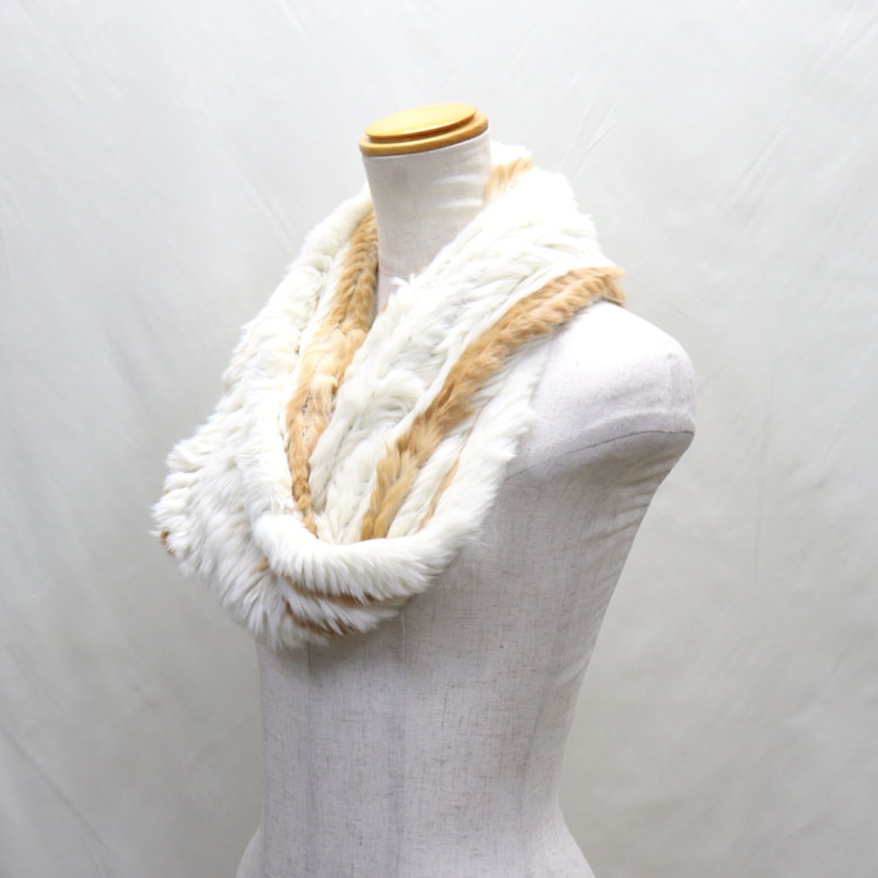 ラビット ファー スヌード 編み込み 筒状 ベージュ ホワイト レディース 送料無料 ギフト プレゼント