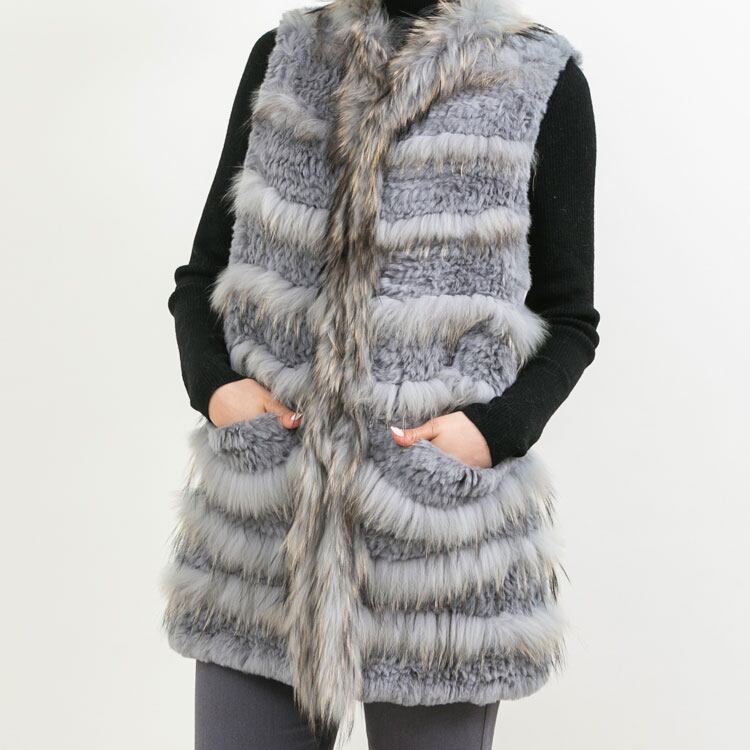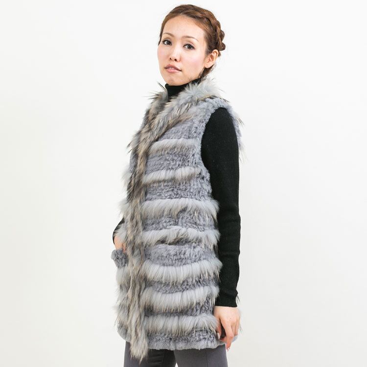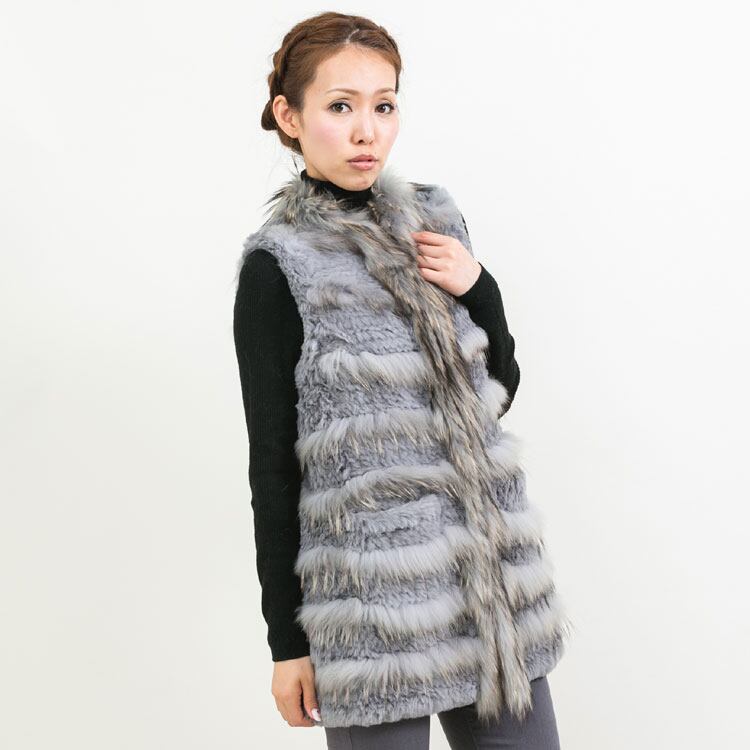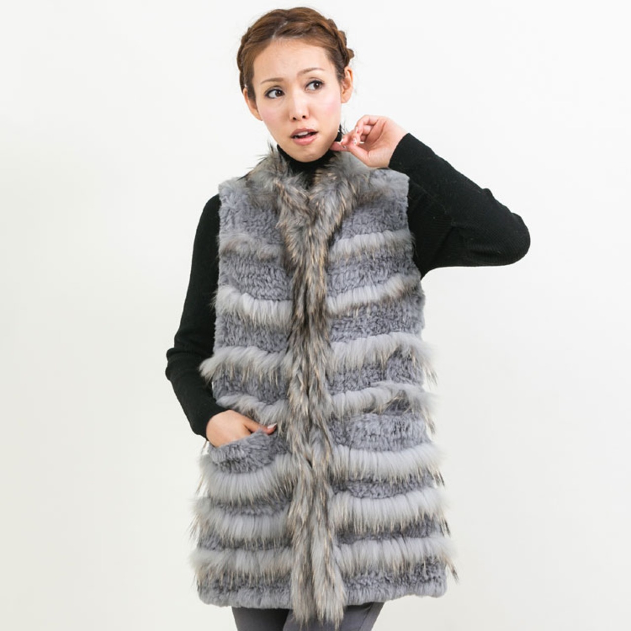 RB441DAGY1063 ラビット ・ ラクーン ロング ファー ベスト グレー 送料無料 レディース ギフト プレゼント