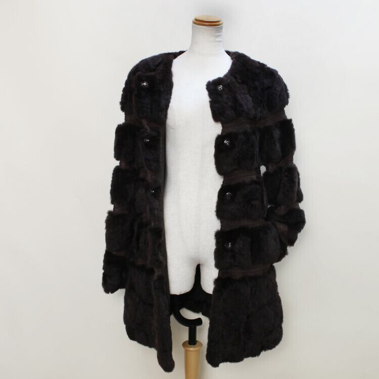 RB4848ABR1063 ラビット ファー ・ アクリル レイヤード ノーカラー コート ブラウン 送料無料 レディース ギフト プレゼント