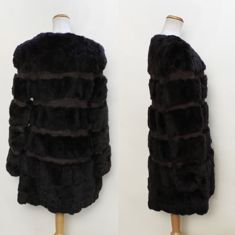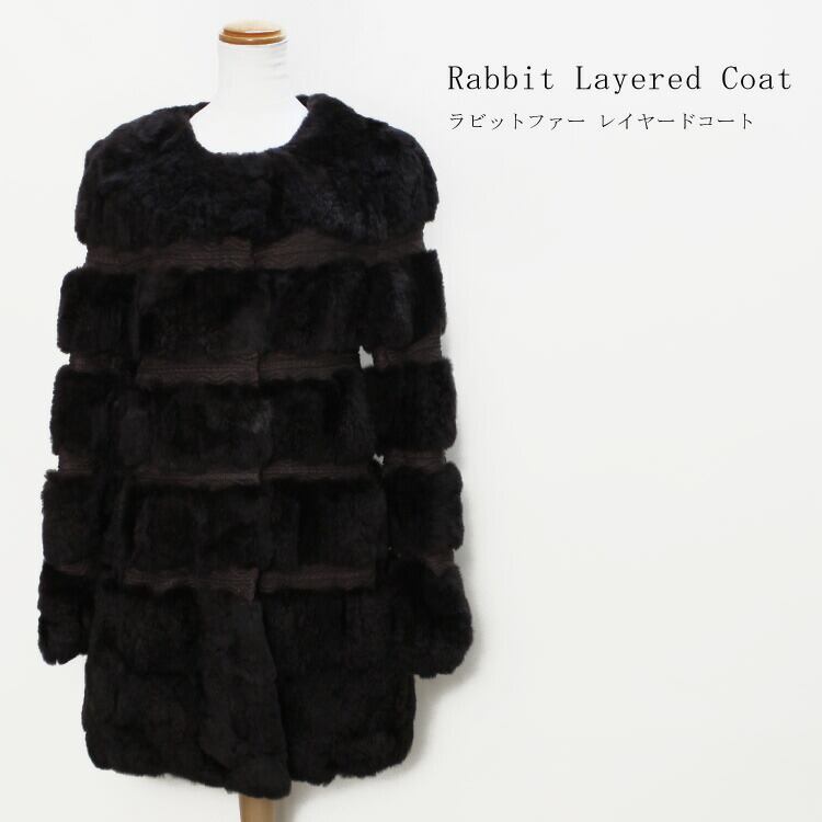 ふわふわ温かなラビットを使用したレイヤード風のファーコートです。アクリルニットがボーダー風の柄になっており個性も◎。予め抜けやすい毛を処理した「抜き毛」加工による、肌触りの良いラビットファーが貴方を包み込んでくれます。